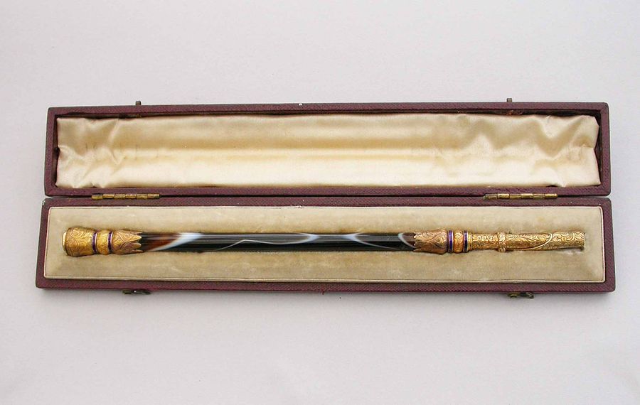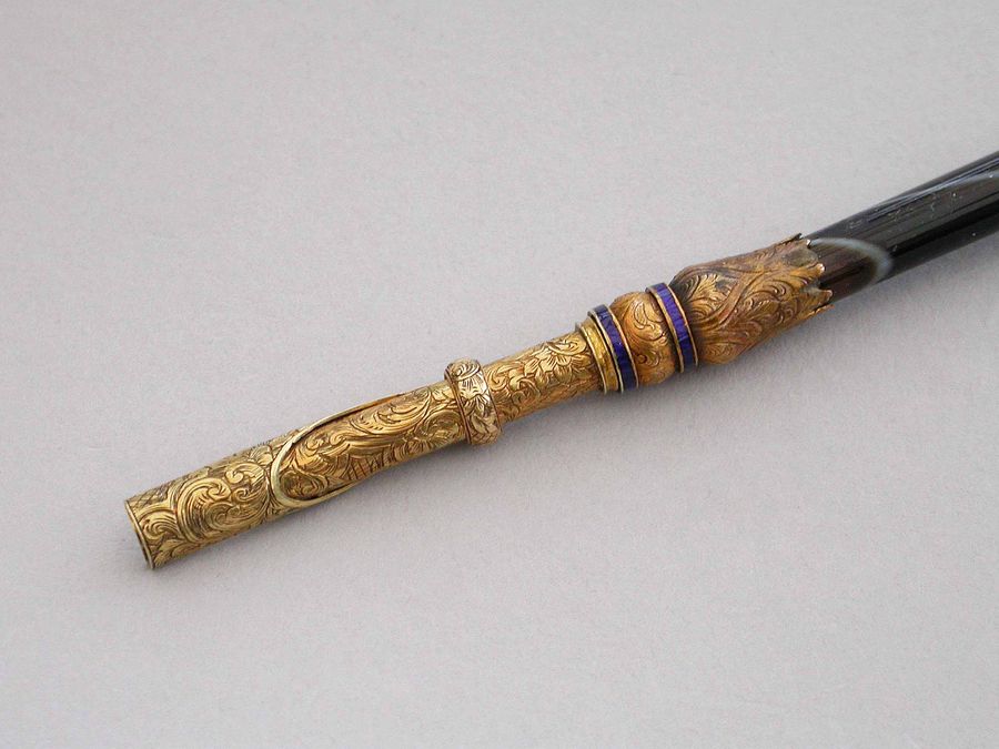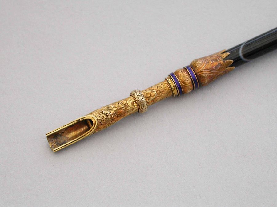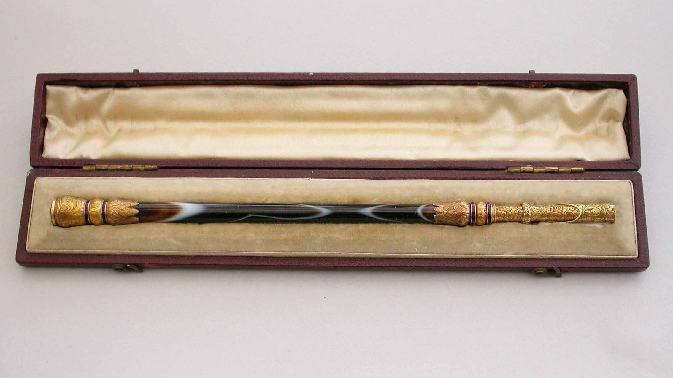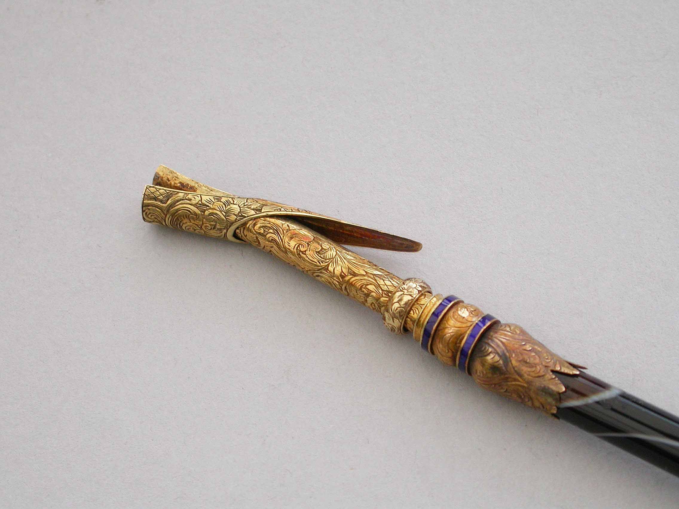 Early 19th Century French Gold Mounted Agate & Enamel Dip Pen
