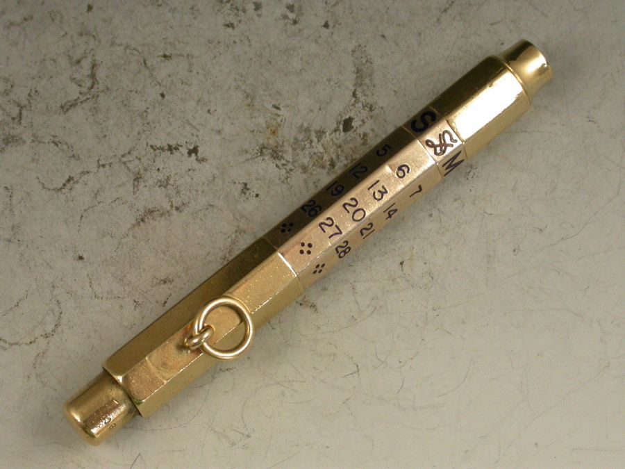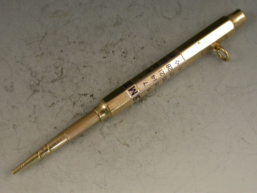 Early 20th Century 9 carat Gold & Enamel Gravity Drop Perpetual Calender Propelling Pencil