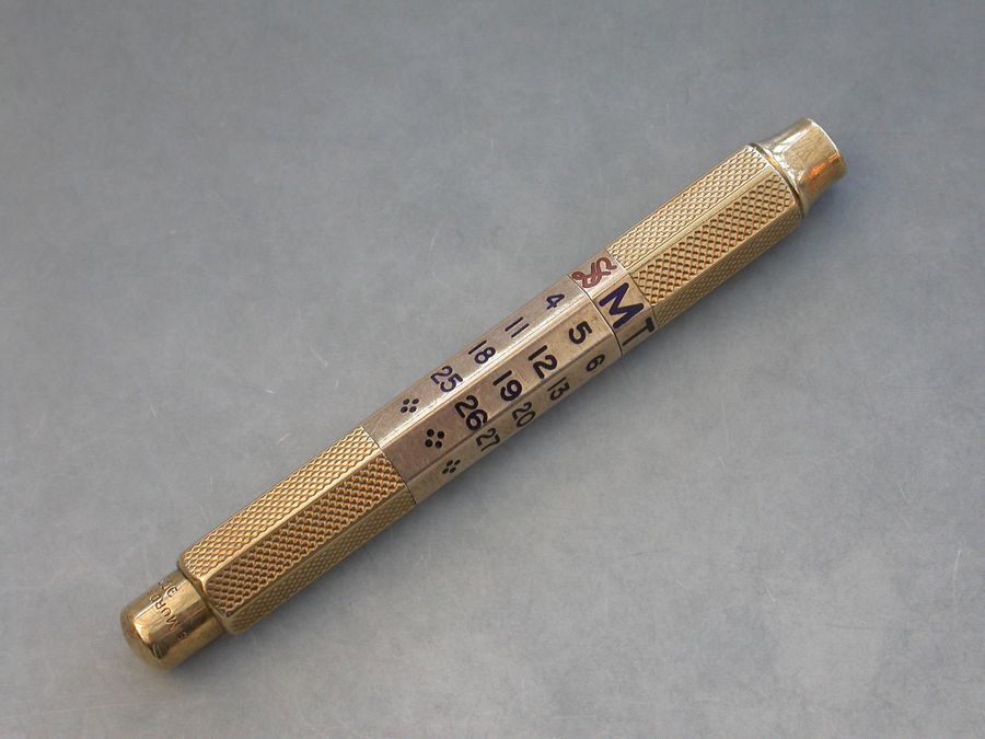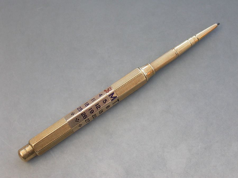 Early 20th Century 9 carat Gold & Enamel Gravity Drop Perpetual Calender Propelling Pencil