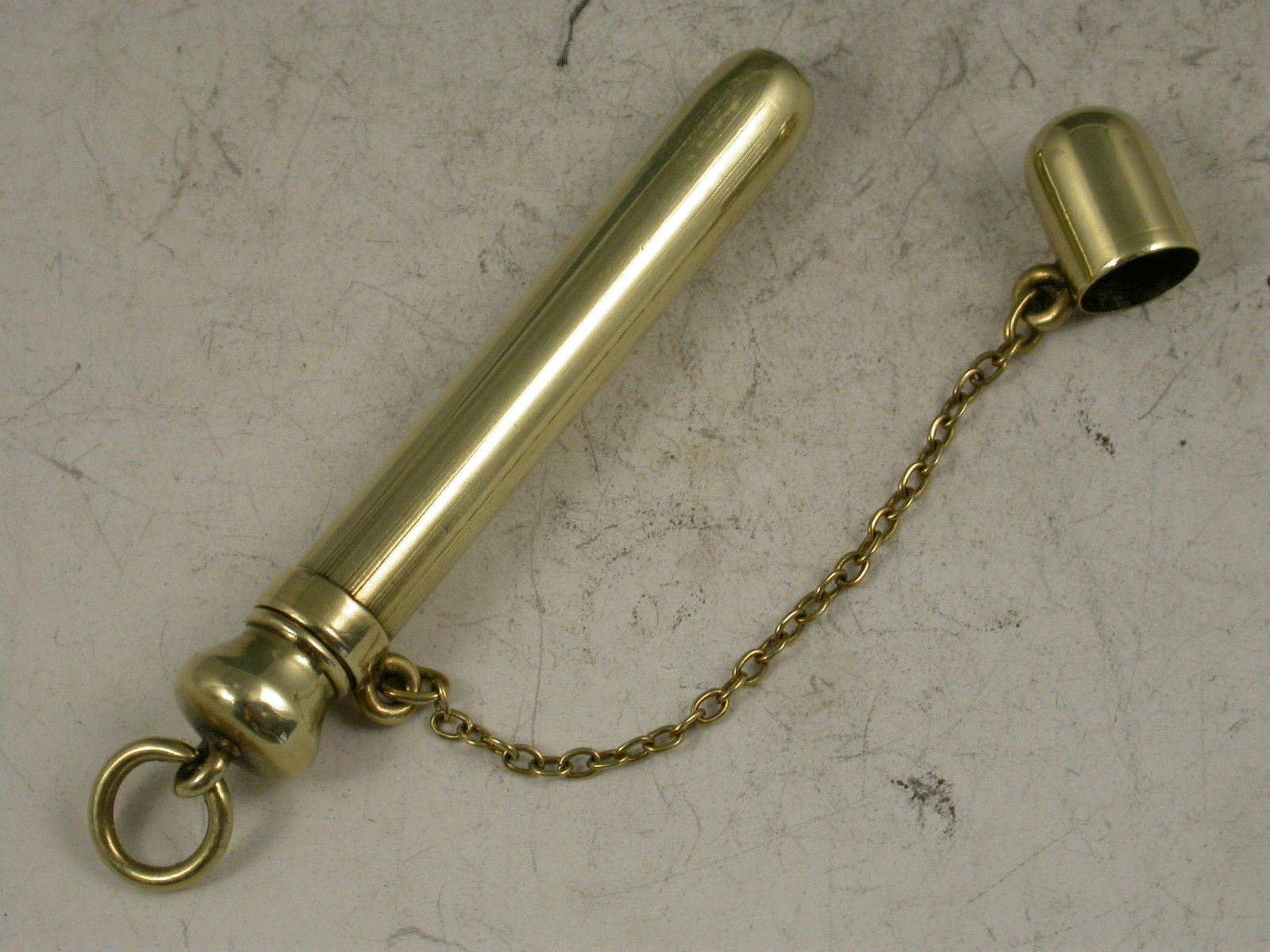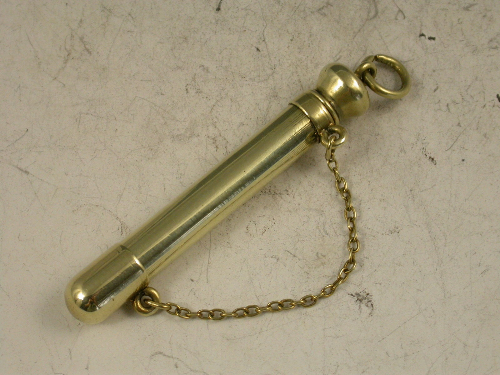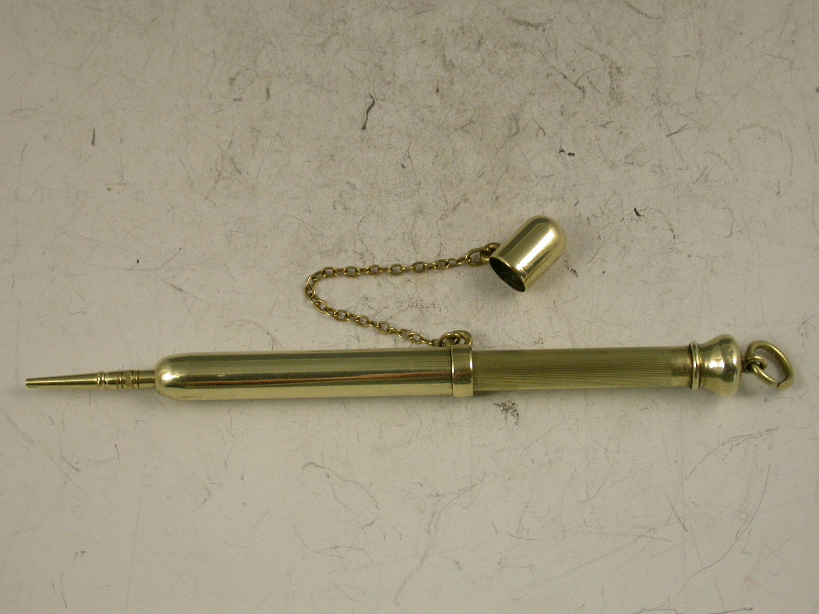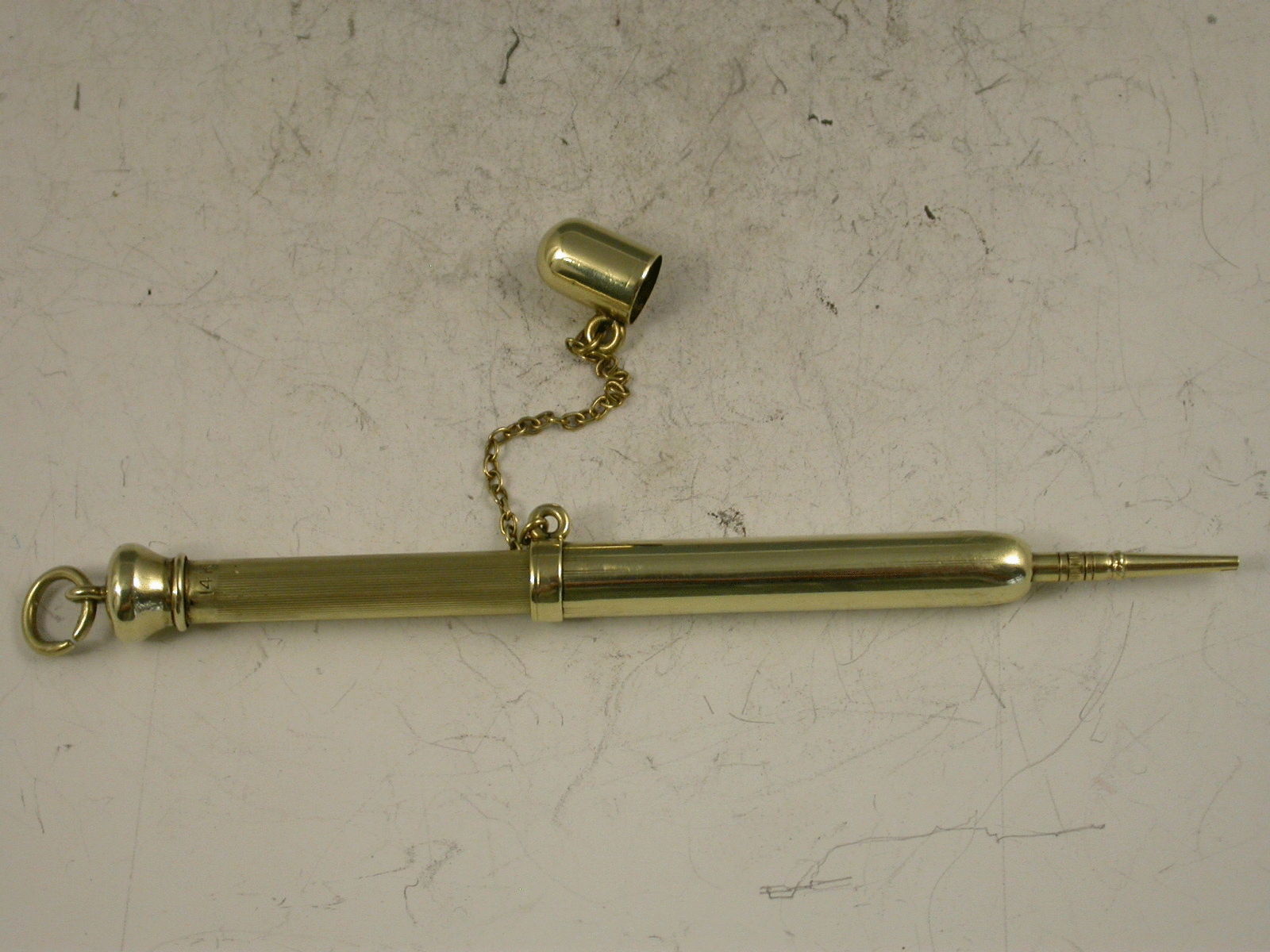 An unusual and nice quality early 20th century American 14K gold telescopic Pencil with attached suspension chain and end cap. A rare design feature.