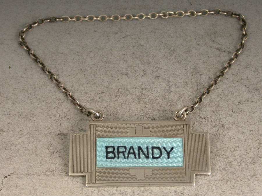Early 20th Century Art Deco Silver & Enamel Wine Label 'Brandy'