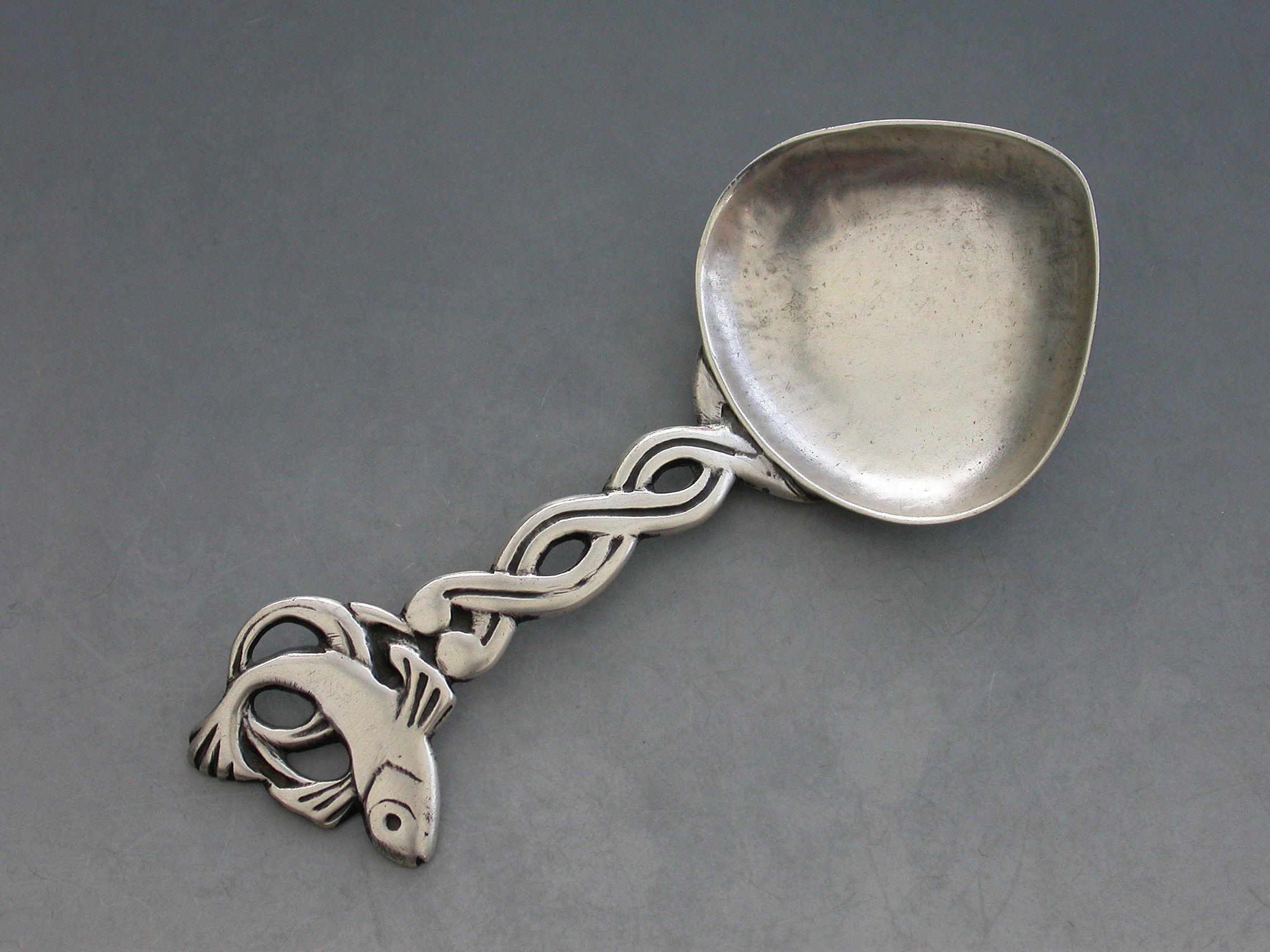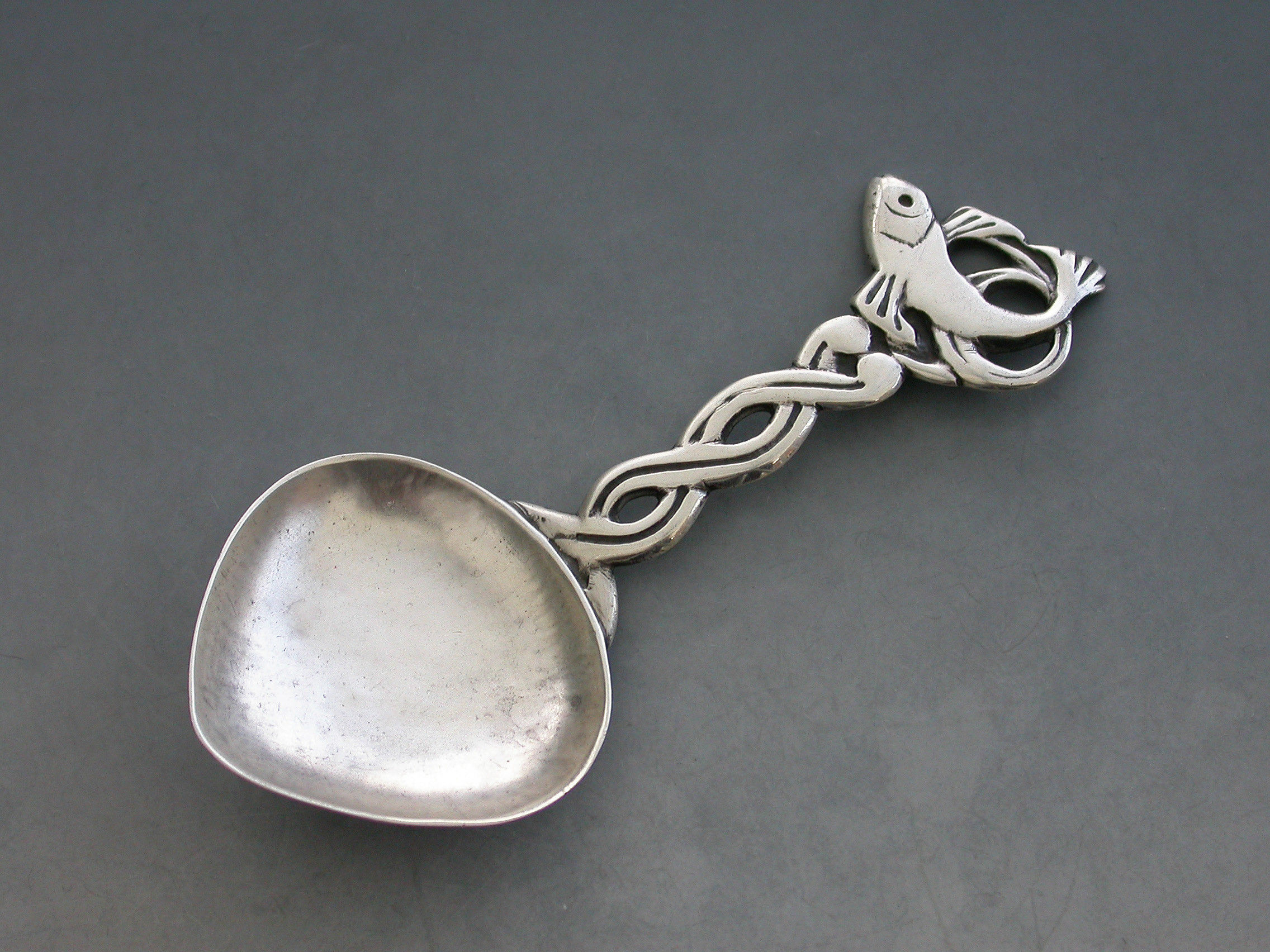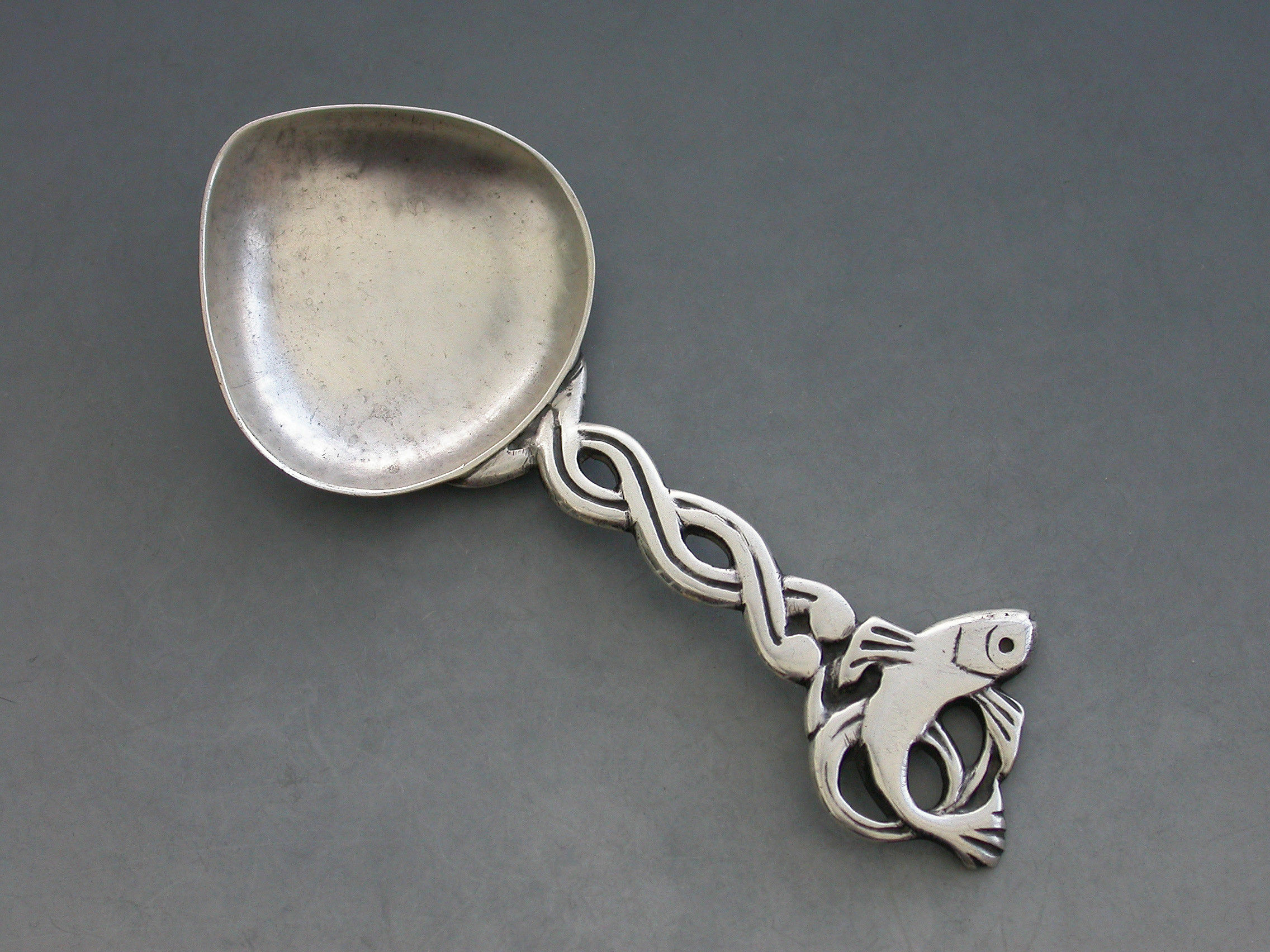 Early 20th Century Arts & Crafts Silver Caddy Spoon - Fish