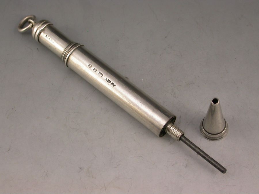 A good quality early 20th century silver Gatling Gun Propelling Pencil, so called because of the resemblance of the internal lead storage chamber to a Gatling Gun Magazine.