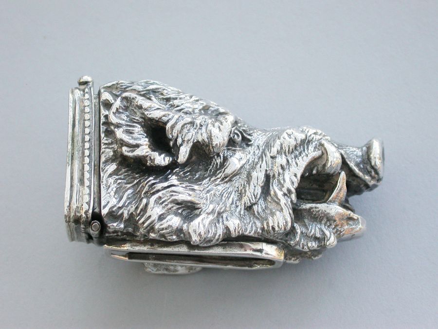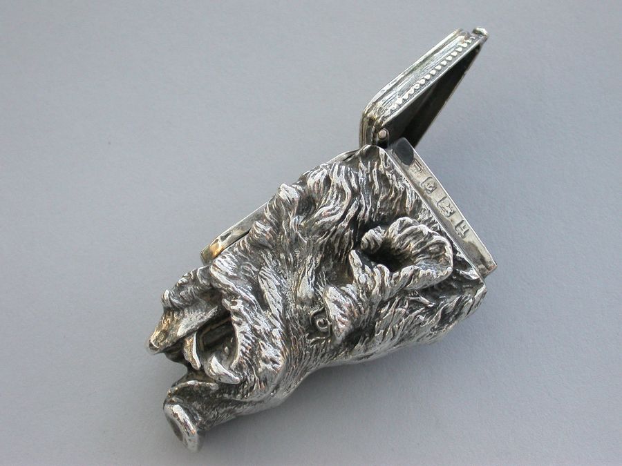 Early 20th Century Cast Silver Boars Head Vesta Case
