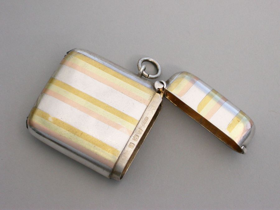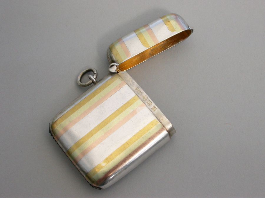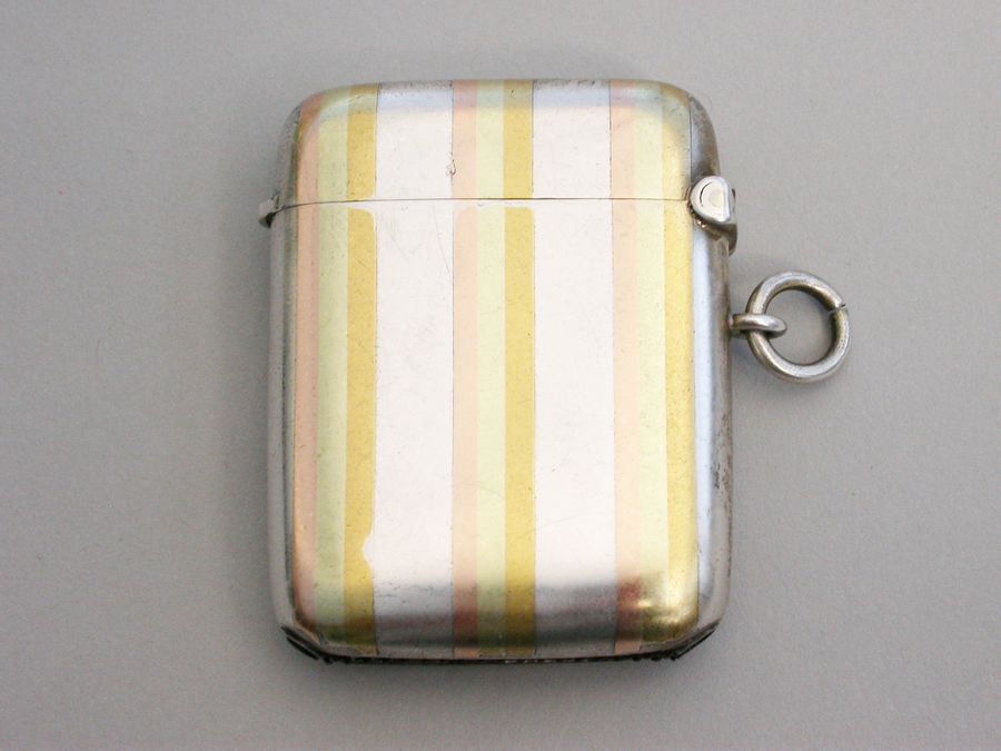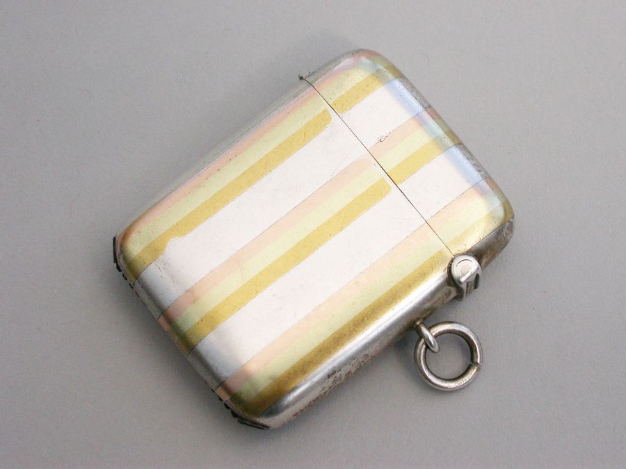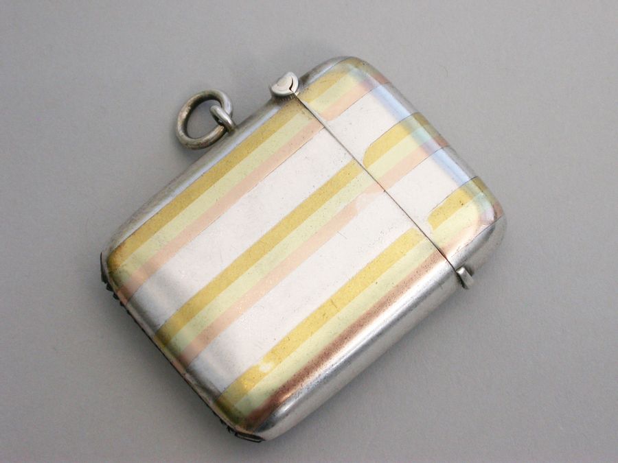 Early 20th Century Silver Vesta Case - 3 Colour Gold Stripes