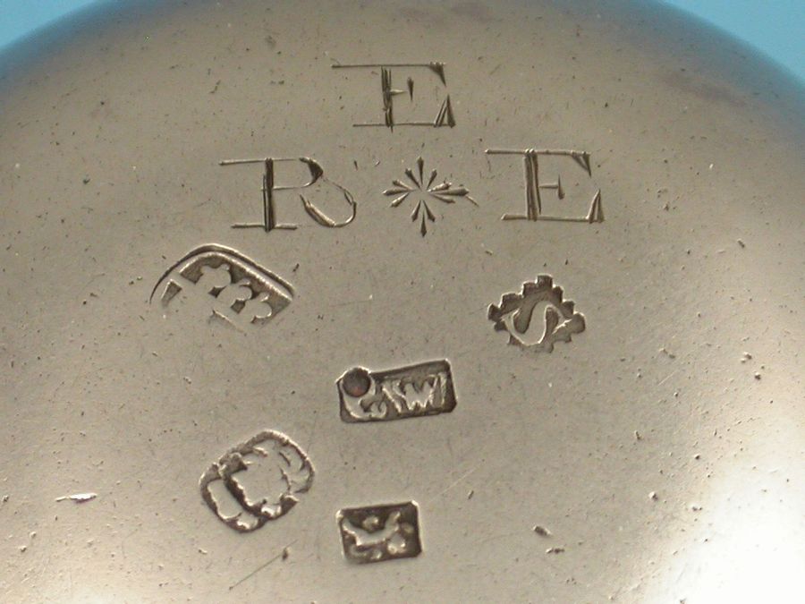 A good early George III Provincial silver Tumbler Cup of standard form with original 'lemon' gilding to the interior, the base engraved with contemporary initials E over R * E.