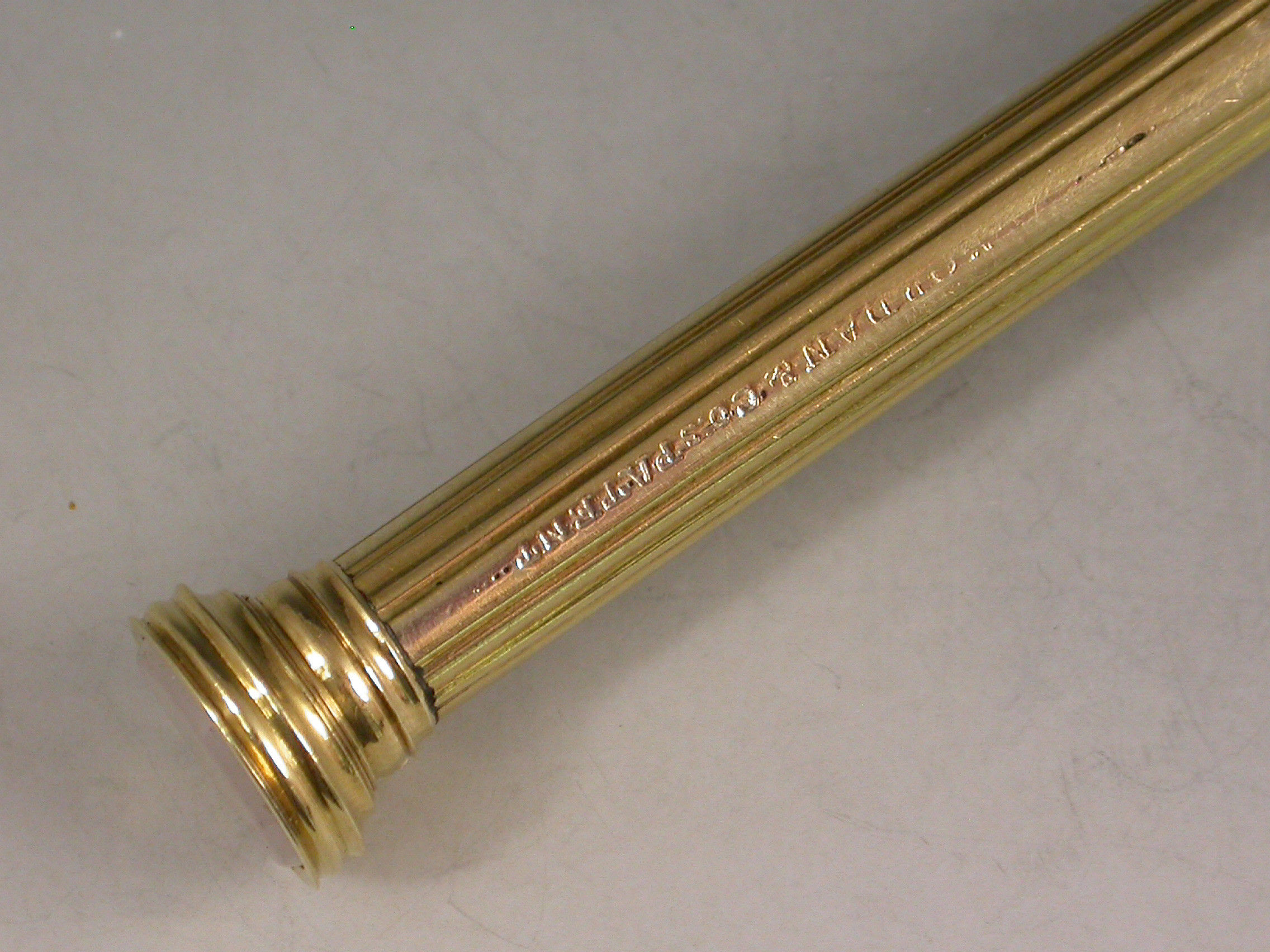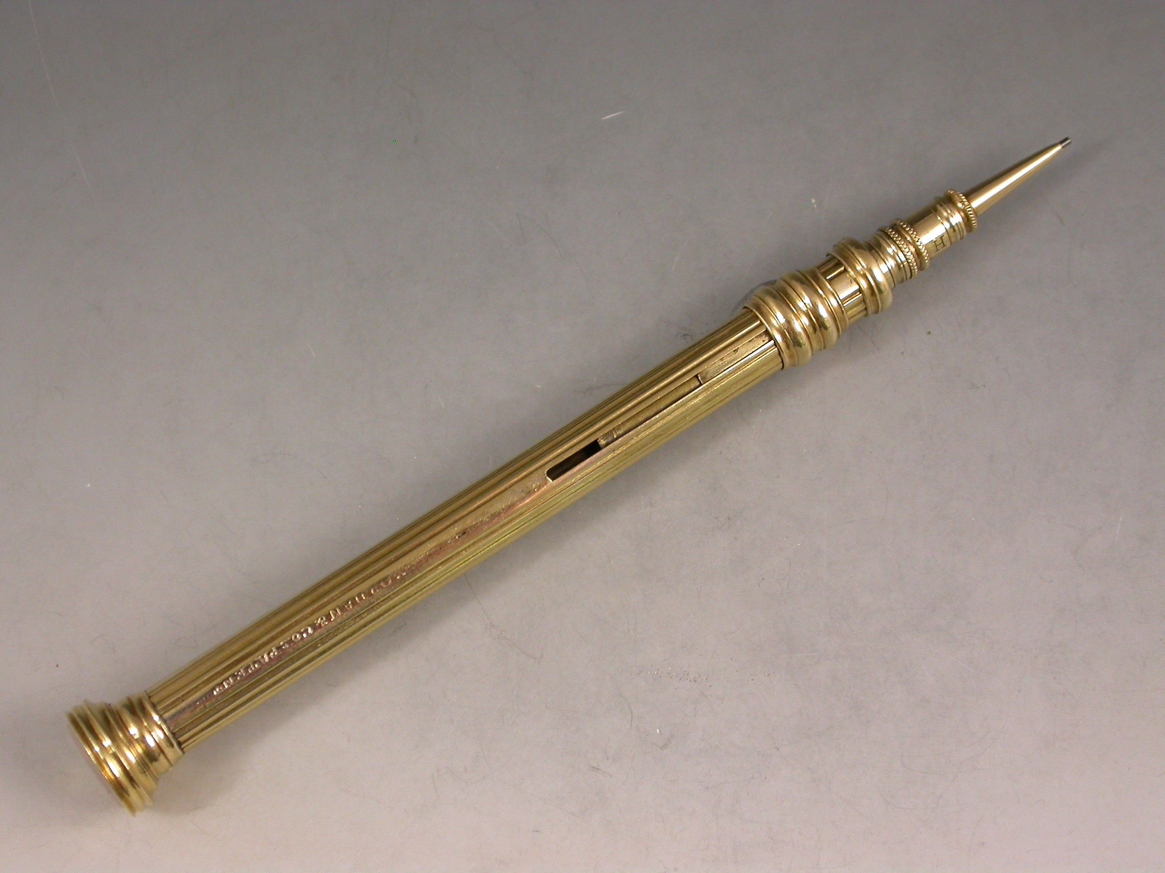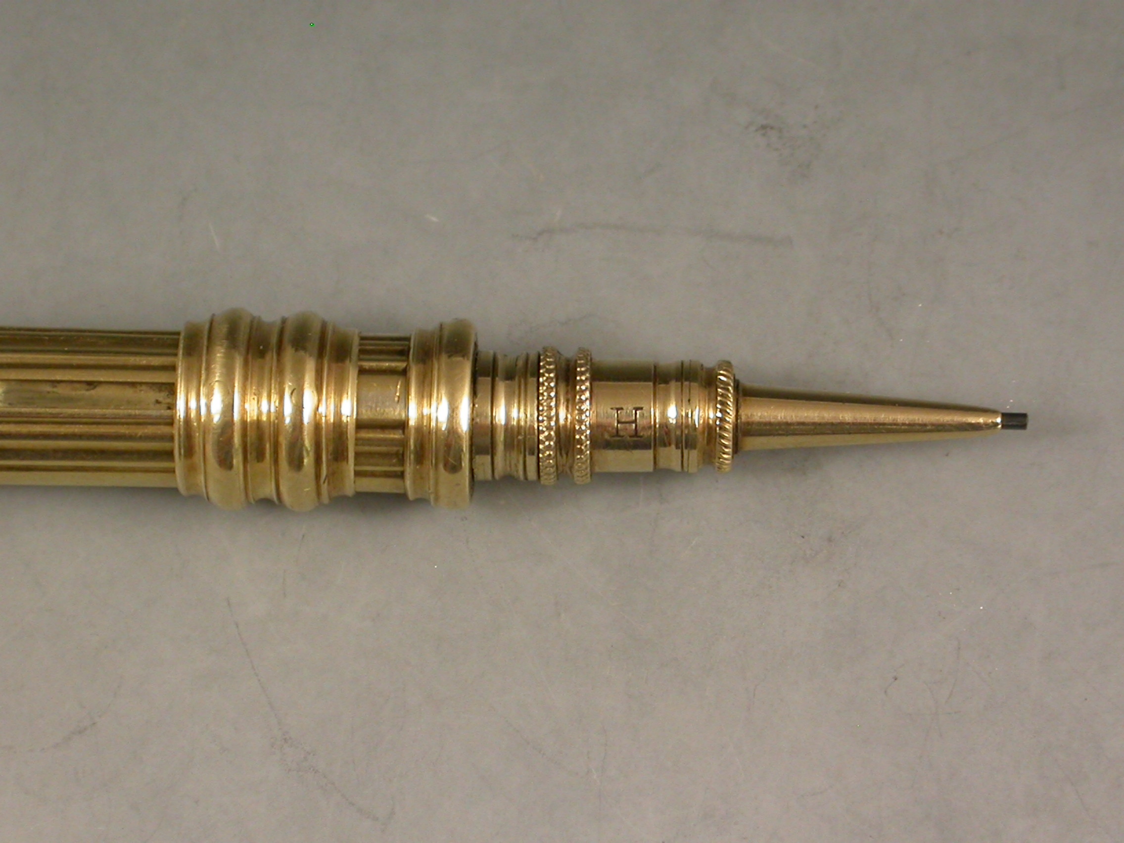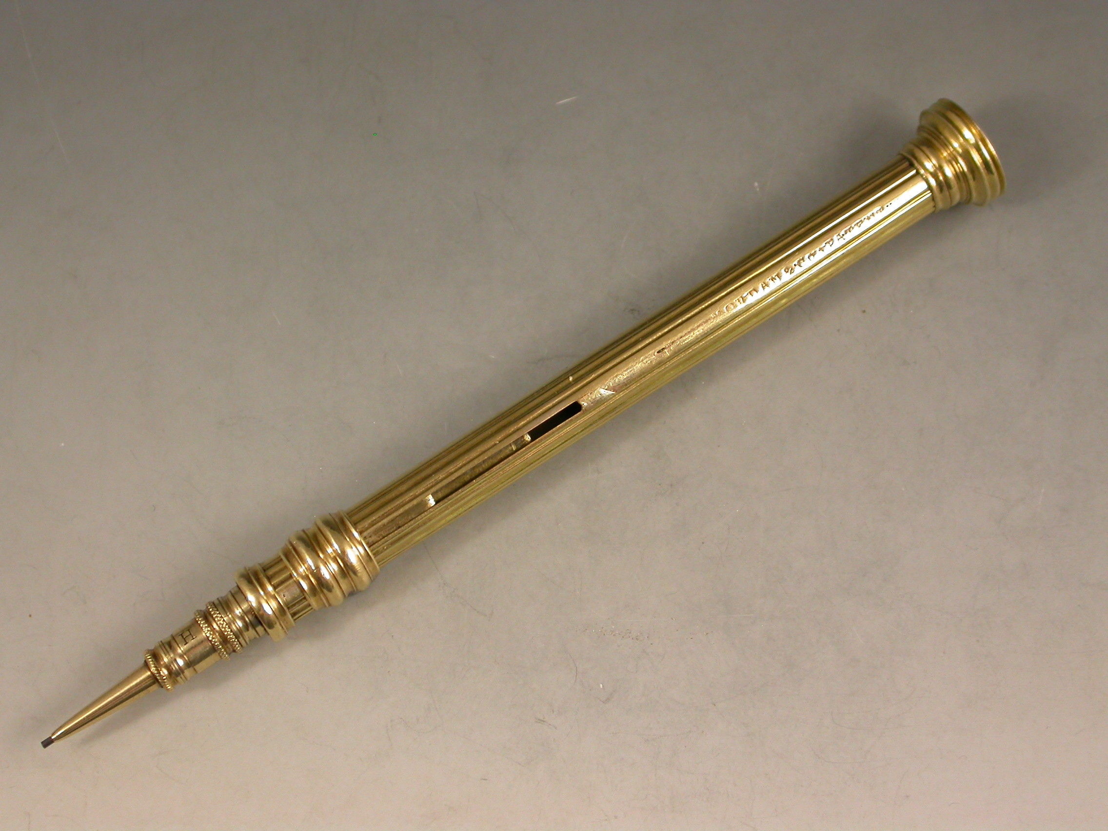 The style of the pencil and the early maker's stamp plus the fixed finial and no lead reservoir would suggest an early c1824 date for this pencil.