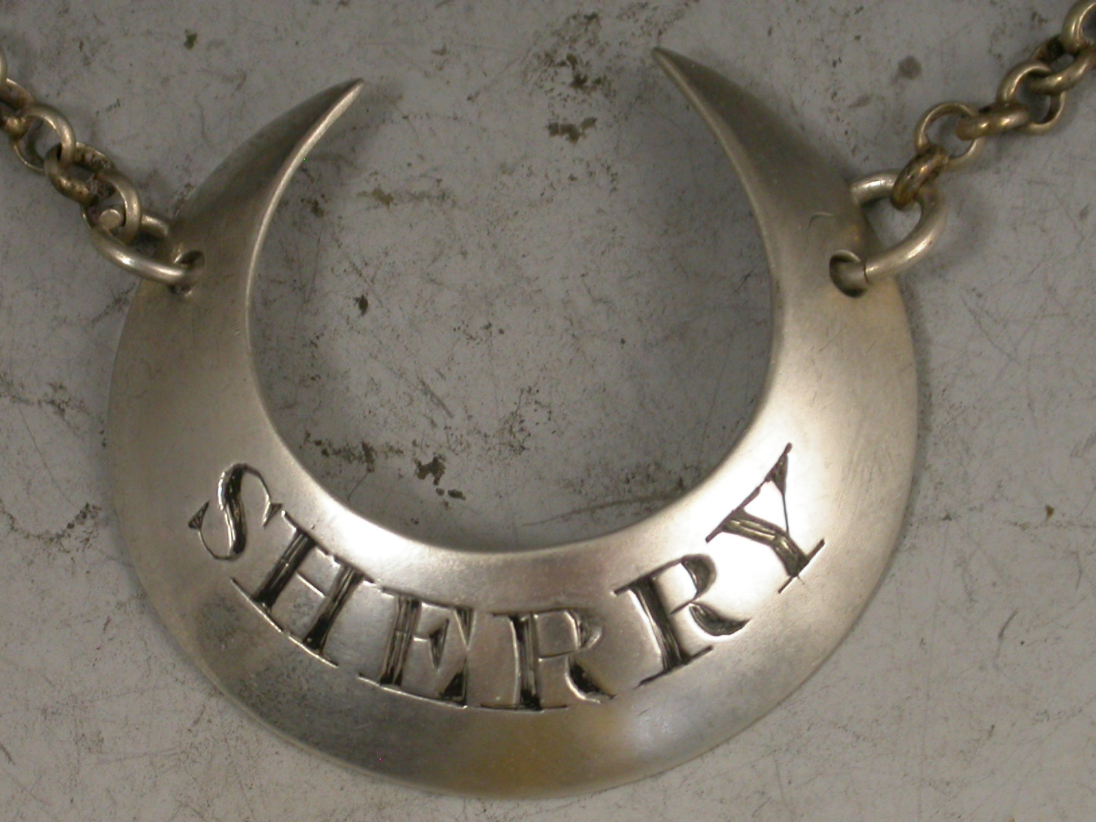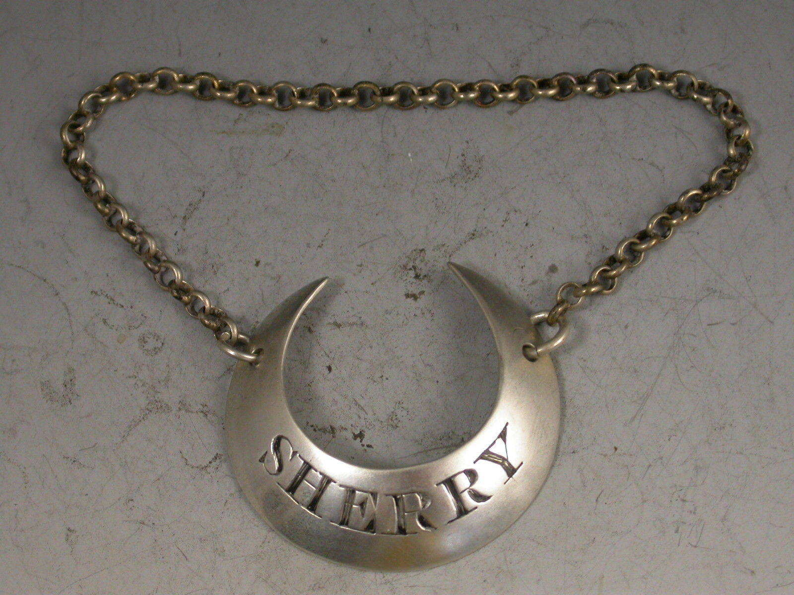 Early Victorian Antique Silver Crescent Wine Label 'Sherry'