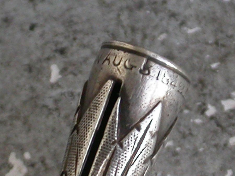 These dated hand / gauntlet Pencils along with the percussion pistols (dated 1840) are generally considered to be amongst first novelty silver pencils produced by a Mordan.