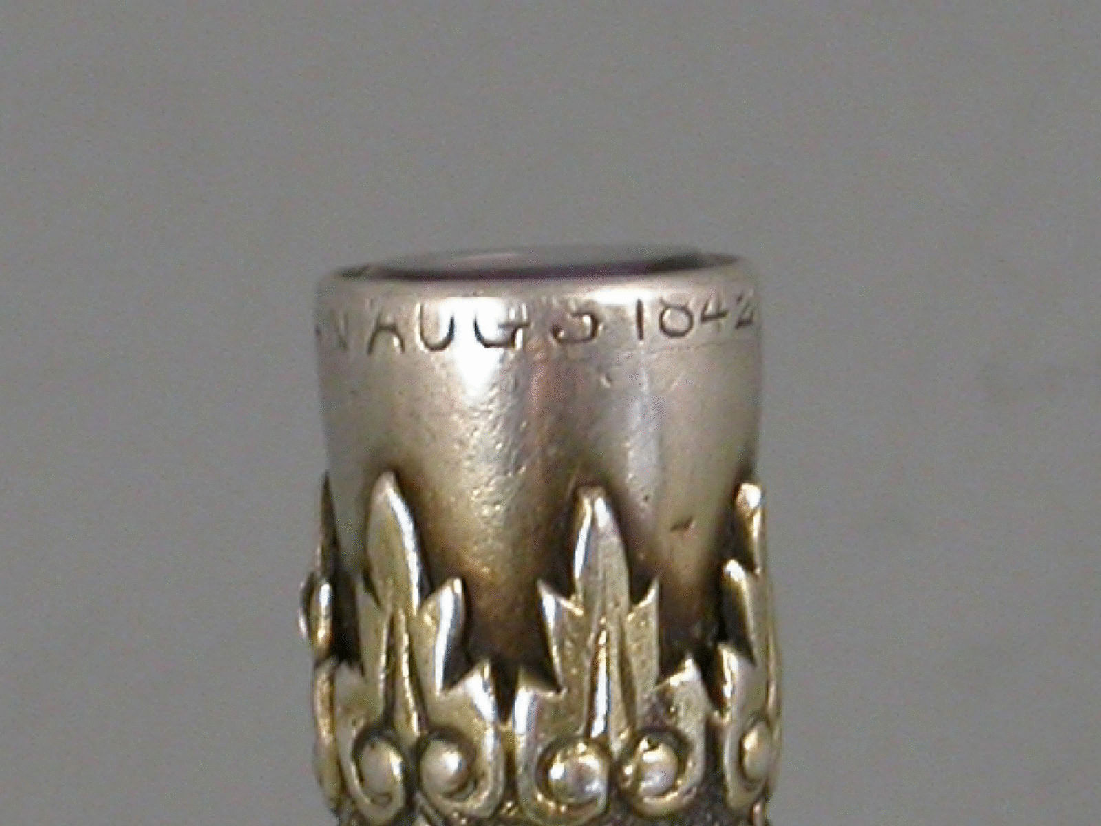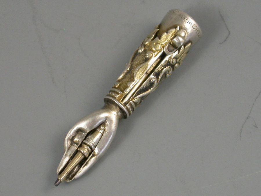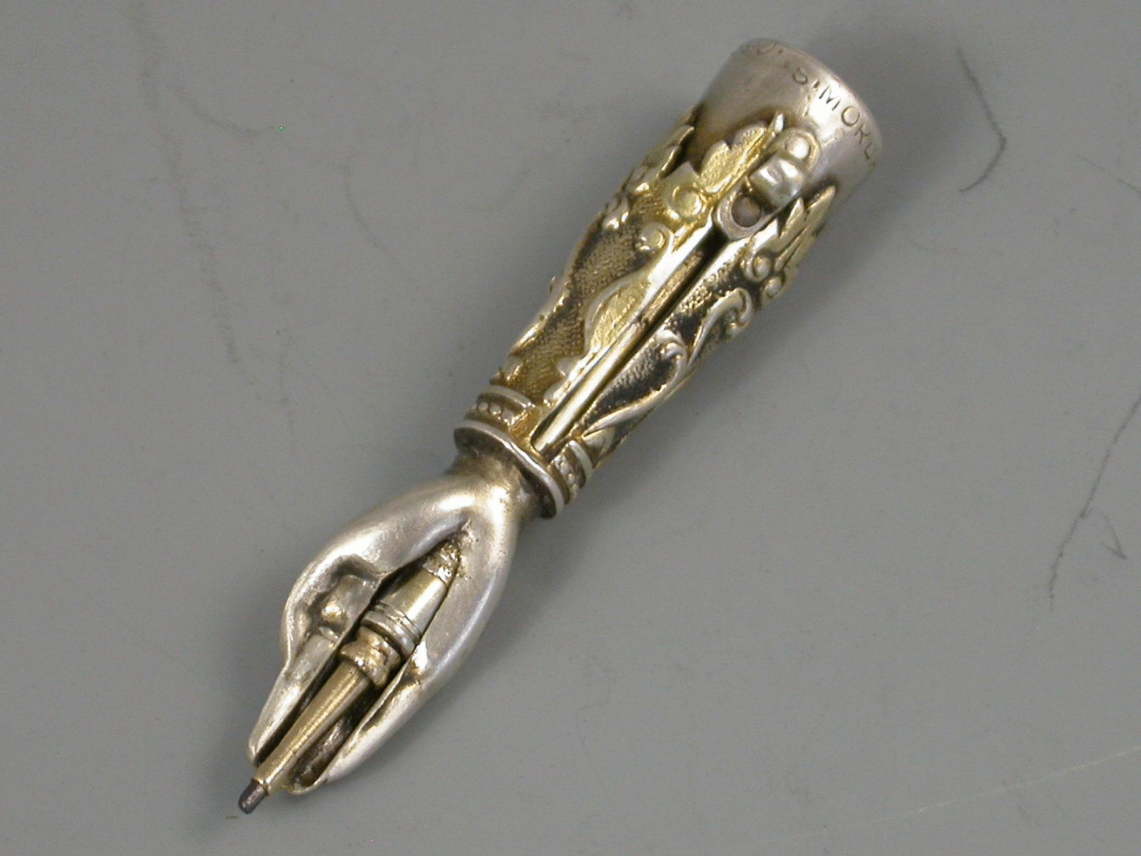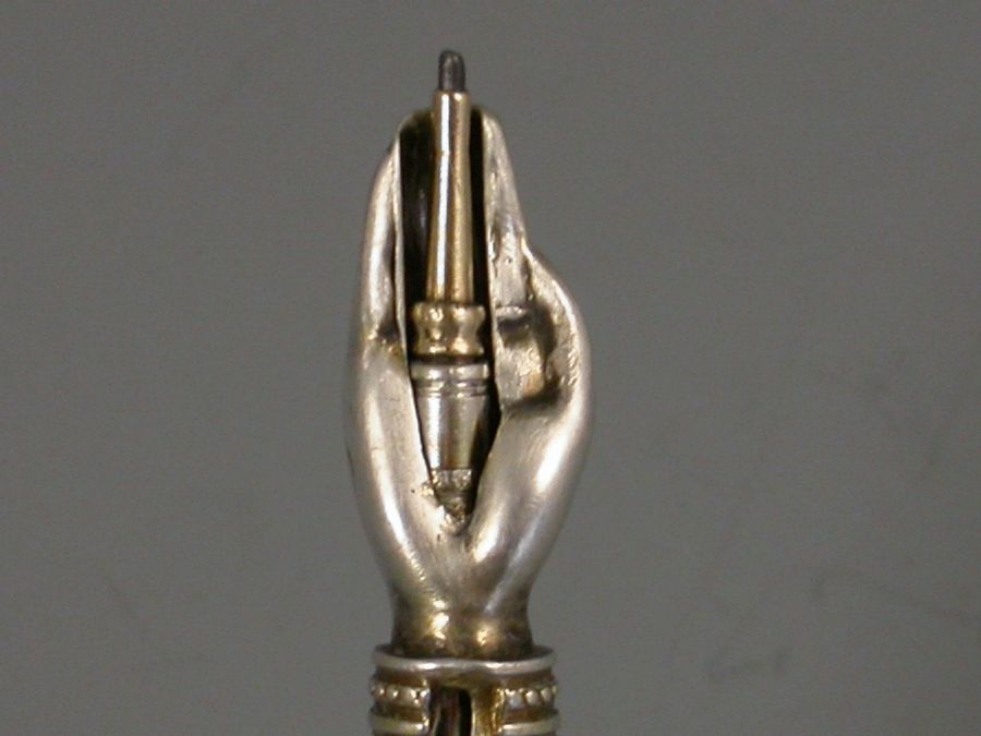 These dated hand / gauntlet Pencils along with the percussion pistols (dated 1840) are generally considered to be amongst first novelty silver pencils produced by a Mordan.