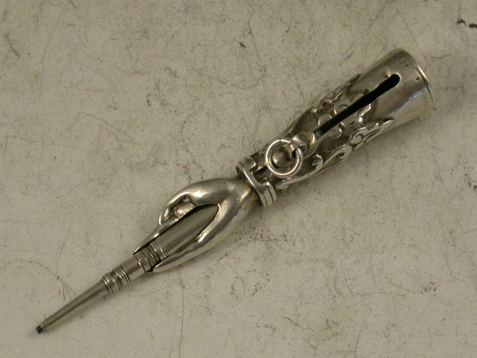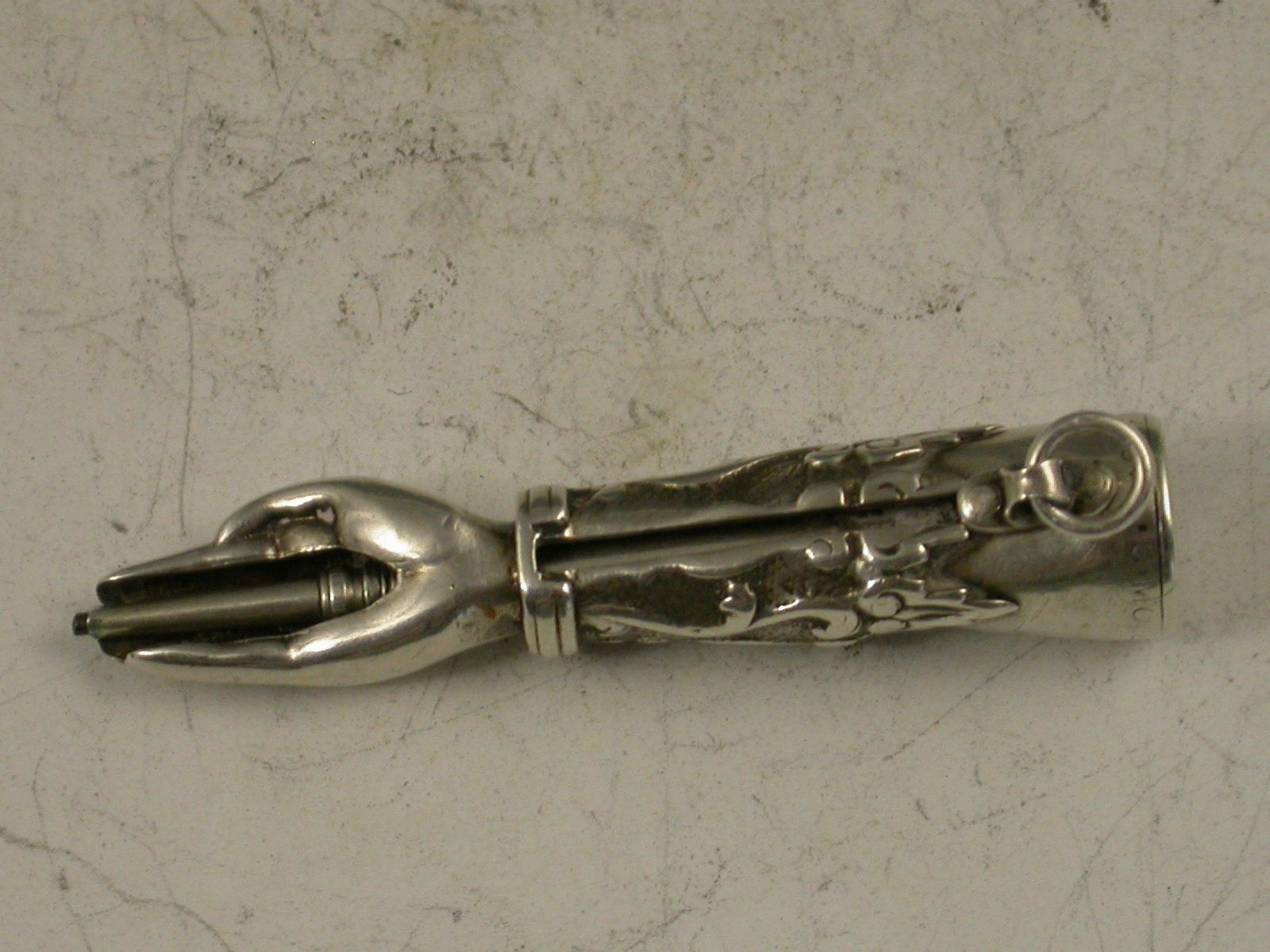 These dated hand / gauntlet pencils along with the Percussion Pistols (dated 1840) are generally considered to be amongst the first novelty silver pencils produced by Mordan.