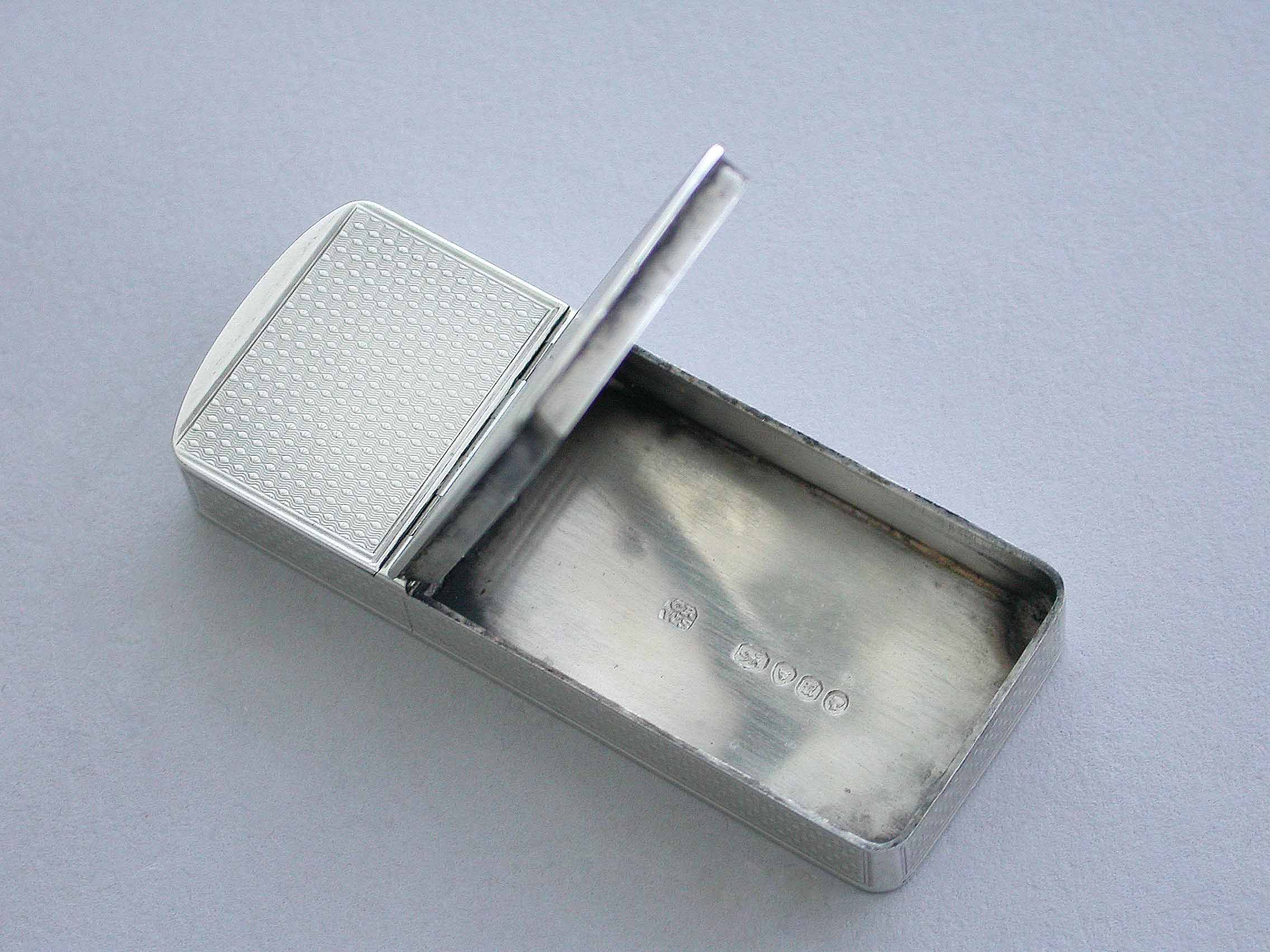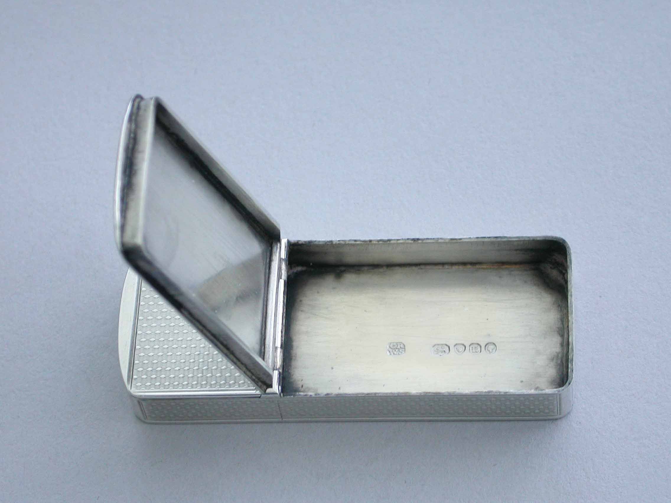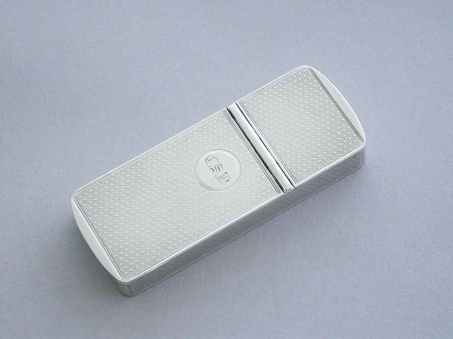 An early Victorian silver twin compartment Vesta Case of flat rectangular form with engine turned decoration and a circular cartouche engraved with contemporary initials, two hinged lids with a metal striker attached to the smaller interior lid.