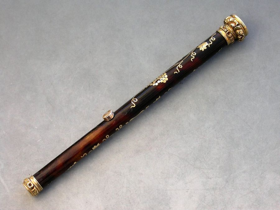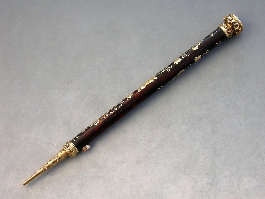 Early Victorian Tortoiseshell & Gold Pique Sliding Propelling Pencil