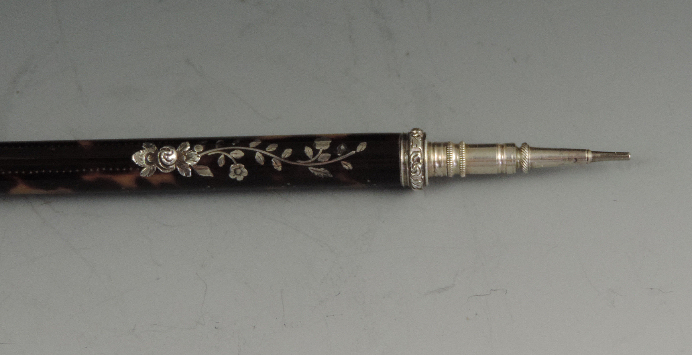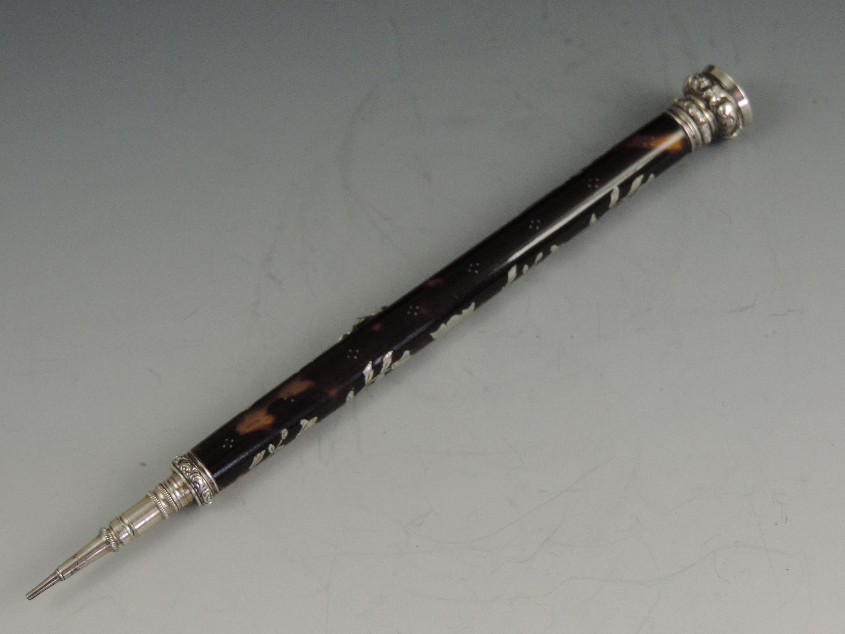 Early Victorian Tortoiseshell & Silver Pique Sliding Propelling Pencil