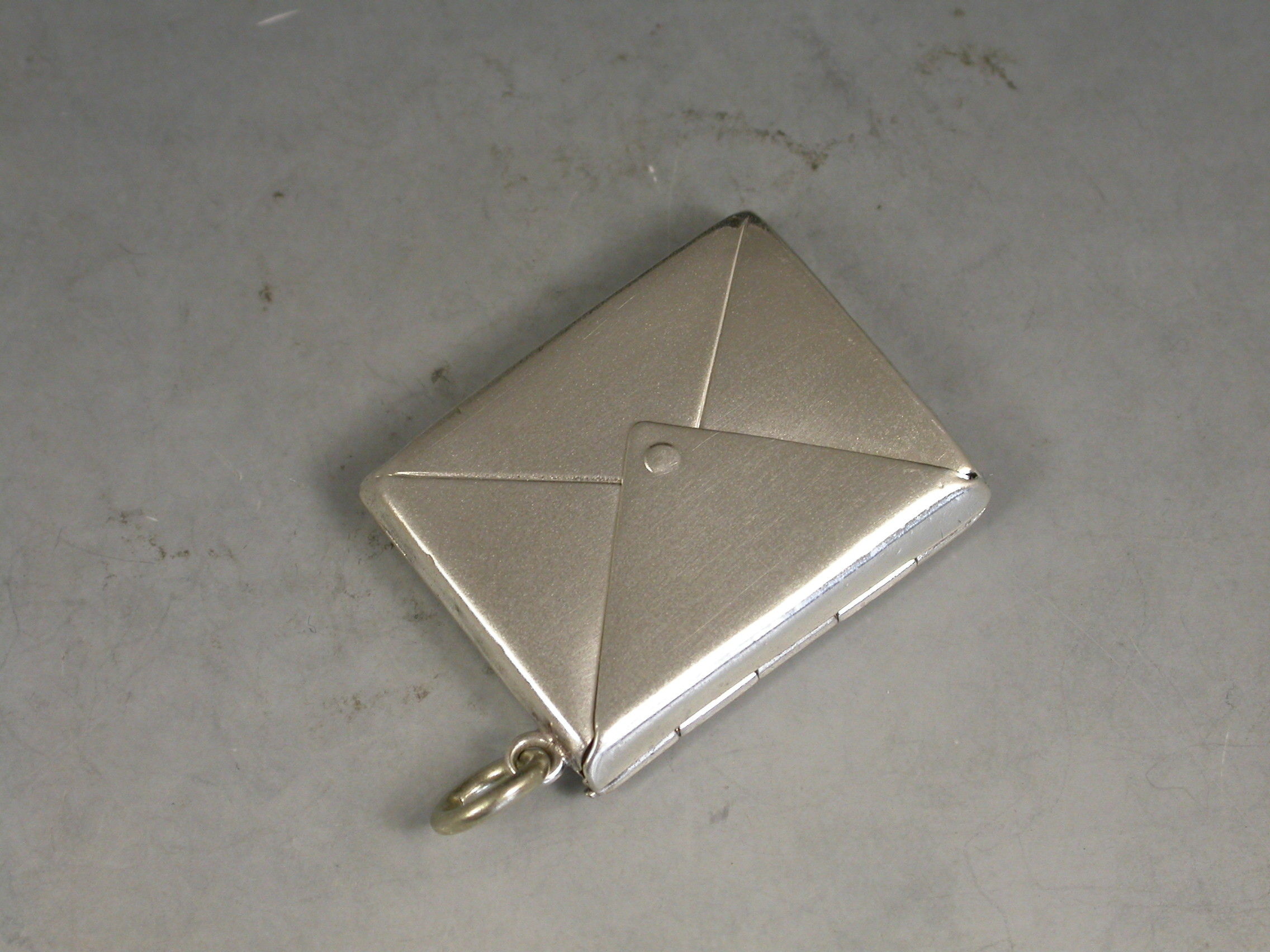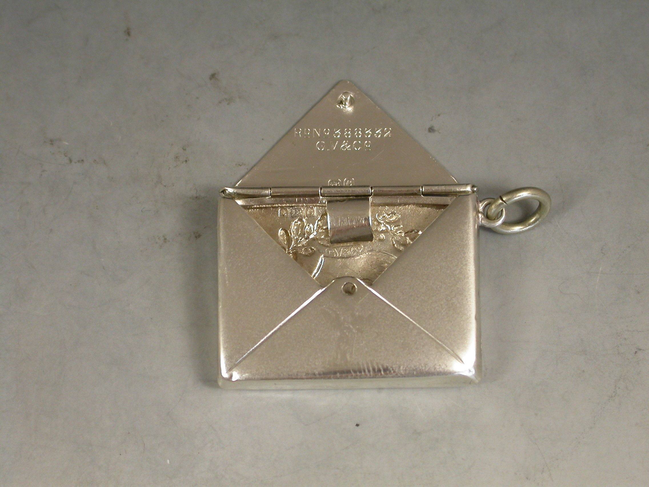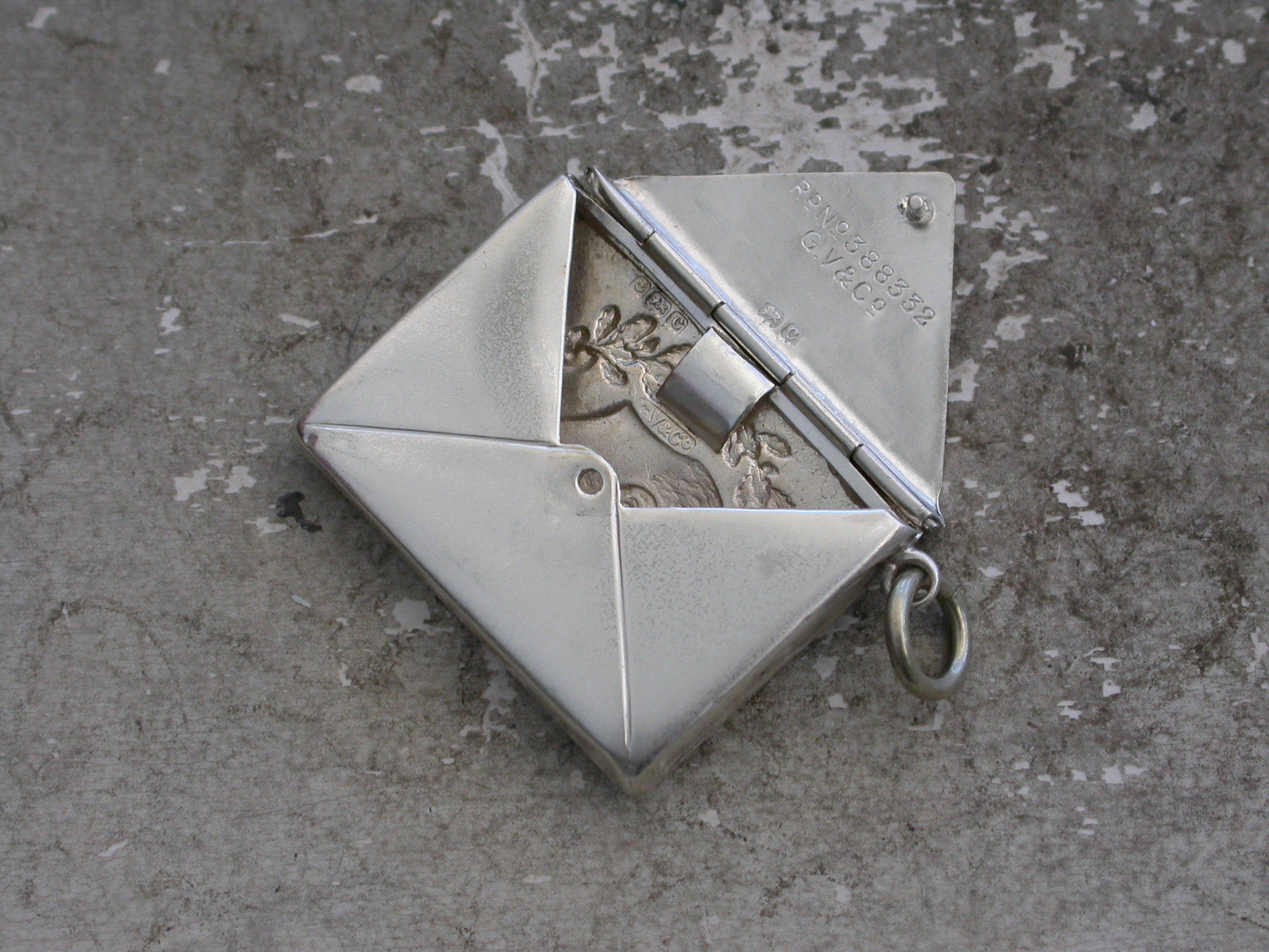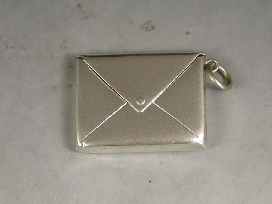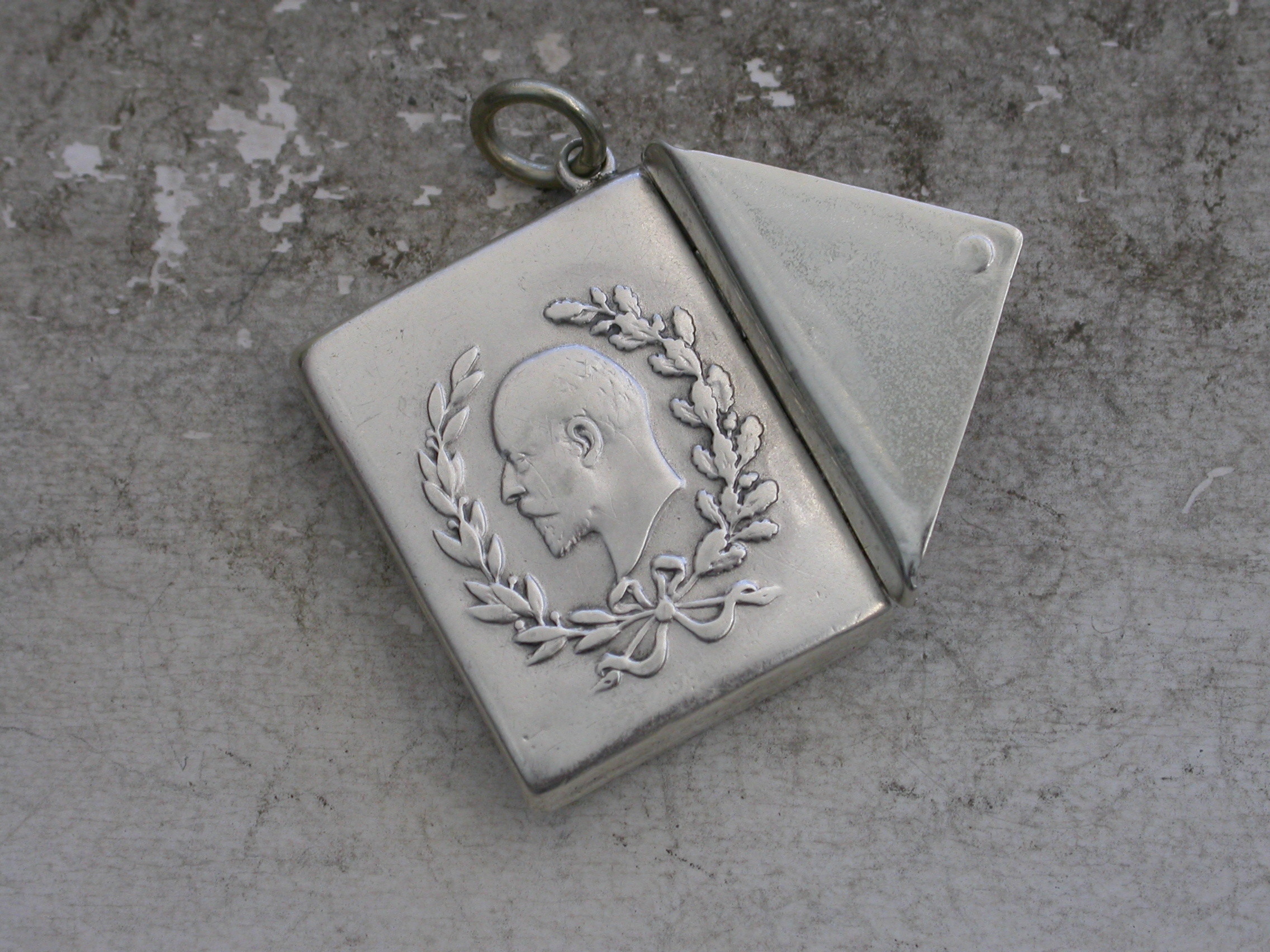 A rare Edward VII commemorative silver Stamp Case of envelope form with attached suspension ring, the cover embossed with a bust of Edward between oak and laurel leaves. Made to commemorate his accession in 1901.