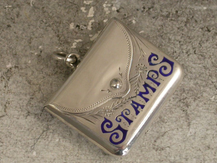 Edwardian Antique Silver & Enamel Envelope Stamp Case