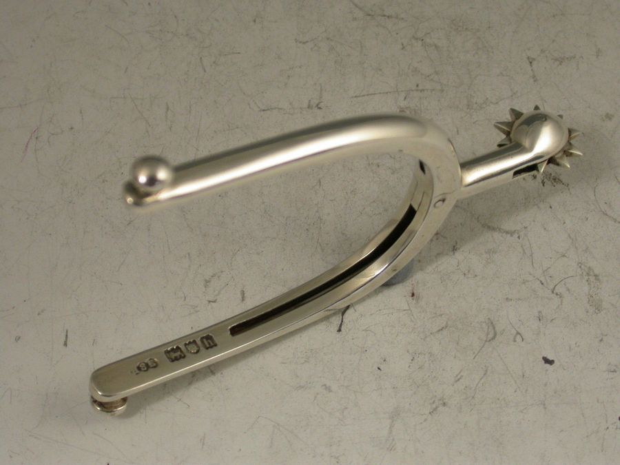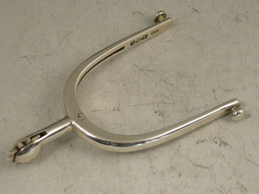 A pair of Edwardian novelty silver Sugar Tongs formed as a Spur with sprung closing mechanism and revolving spiked wheel.