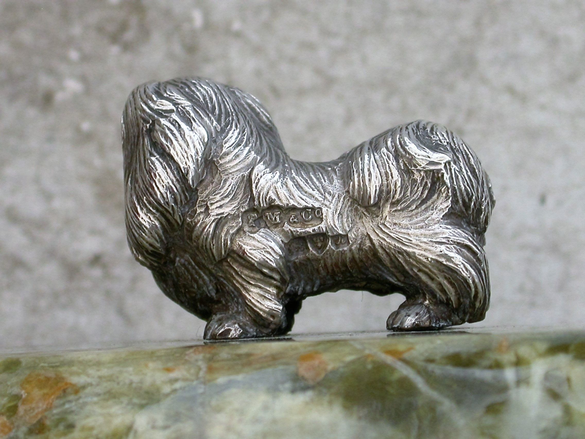 Edwardian Antique Silver Pekingese Dog Paperweight