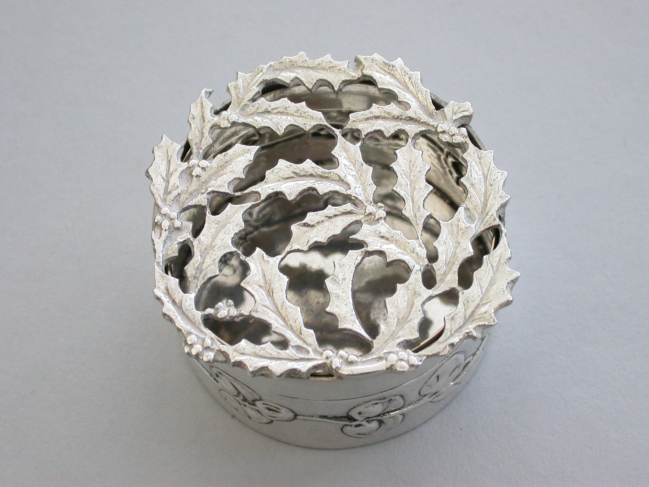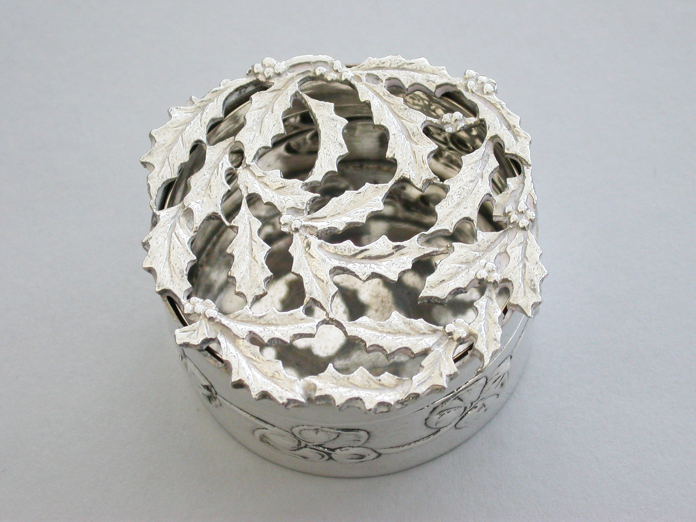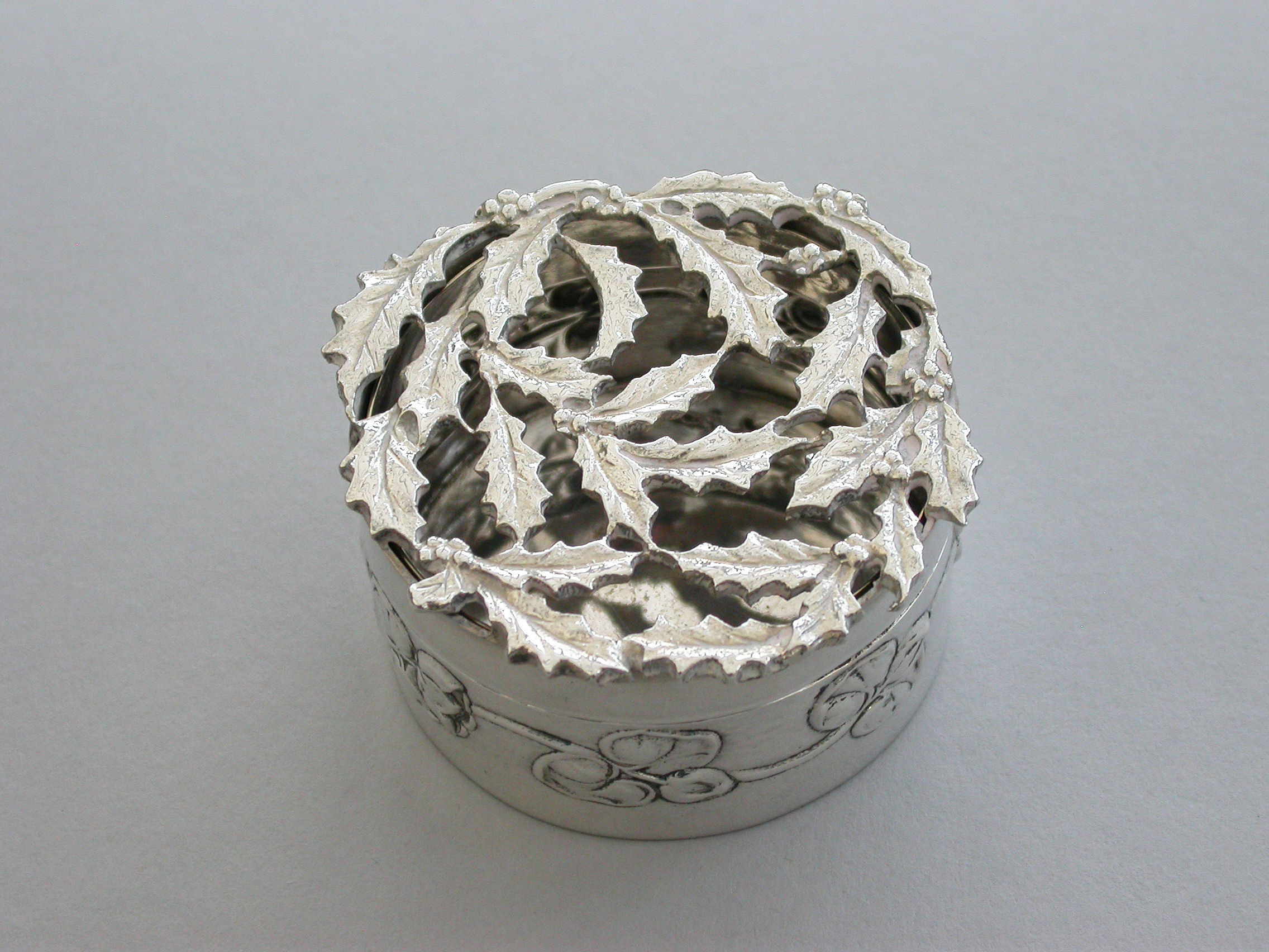 Edwardian Art Nouveau Silver Christmas Holly Pot Pourri Box
