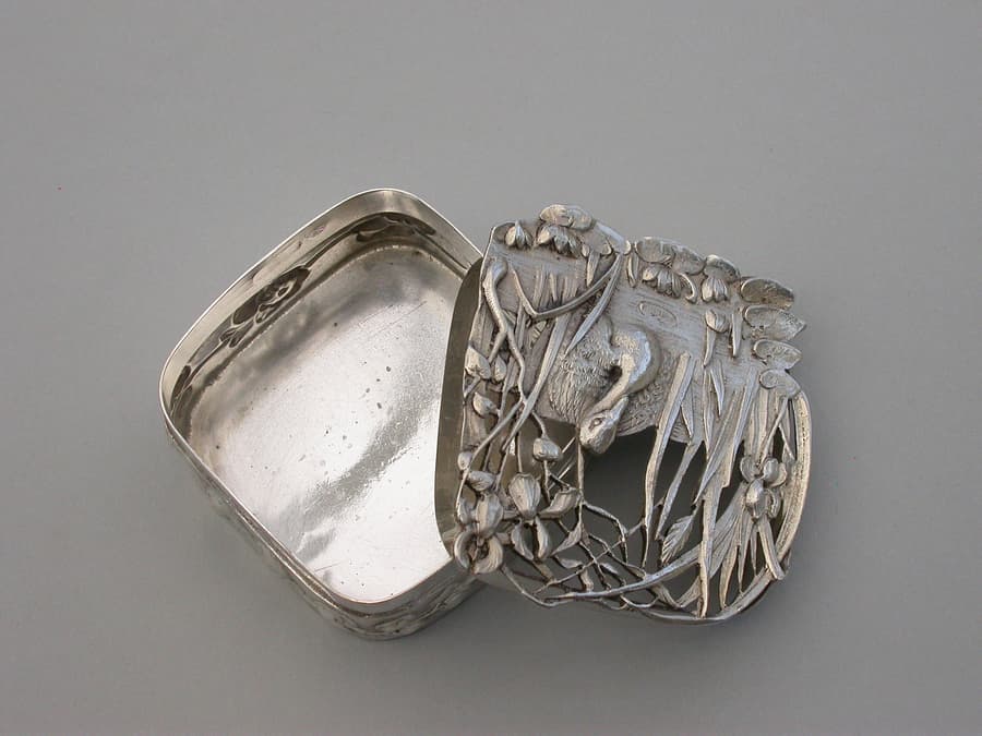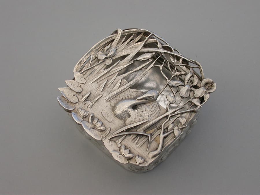 Edwardian Art Nouveau Silver Pot Pourri Box - Swan on a Pond