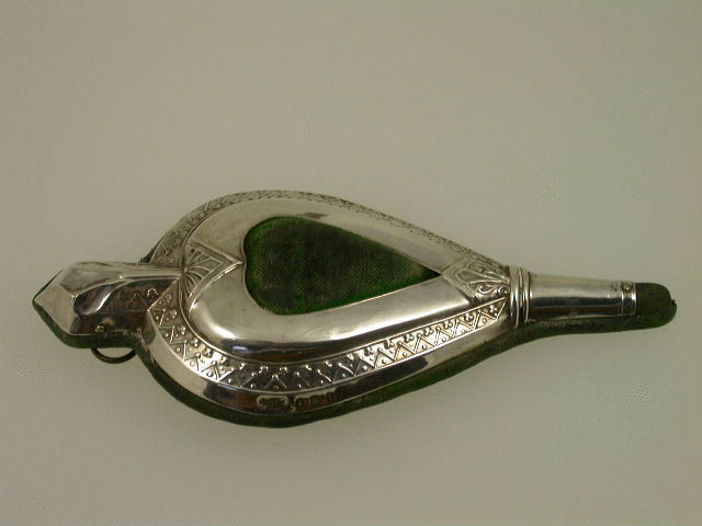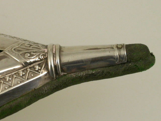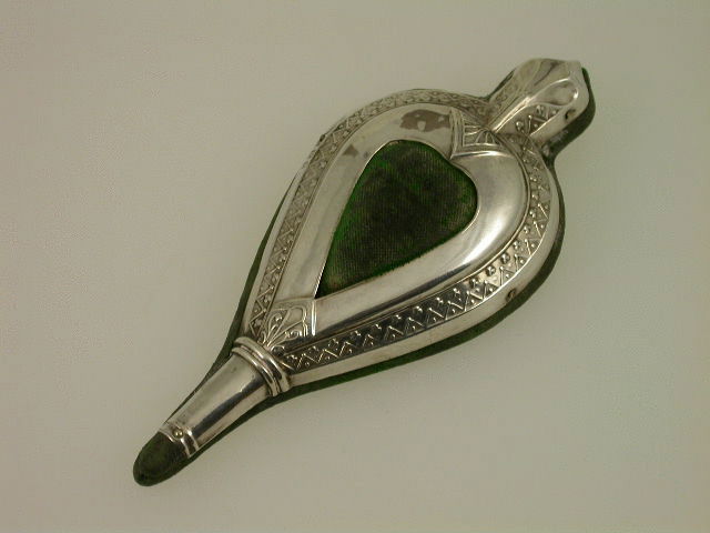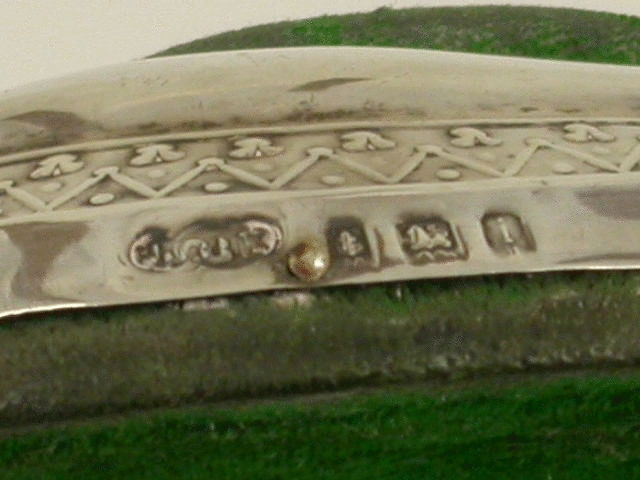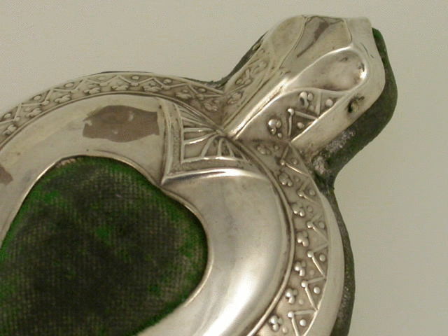 A large Edwardian silver mounted Novelty Pin Cushion made in the form of a pair of fire bellows, with original green velvet cushion.