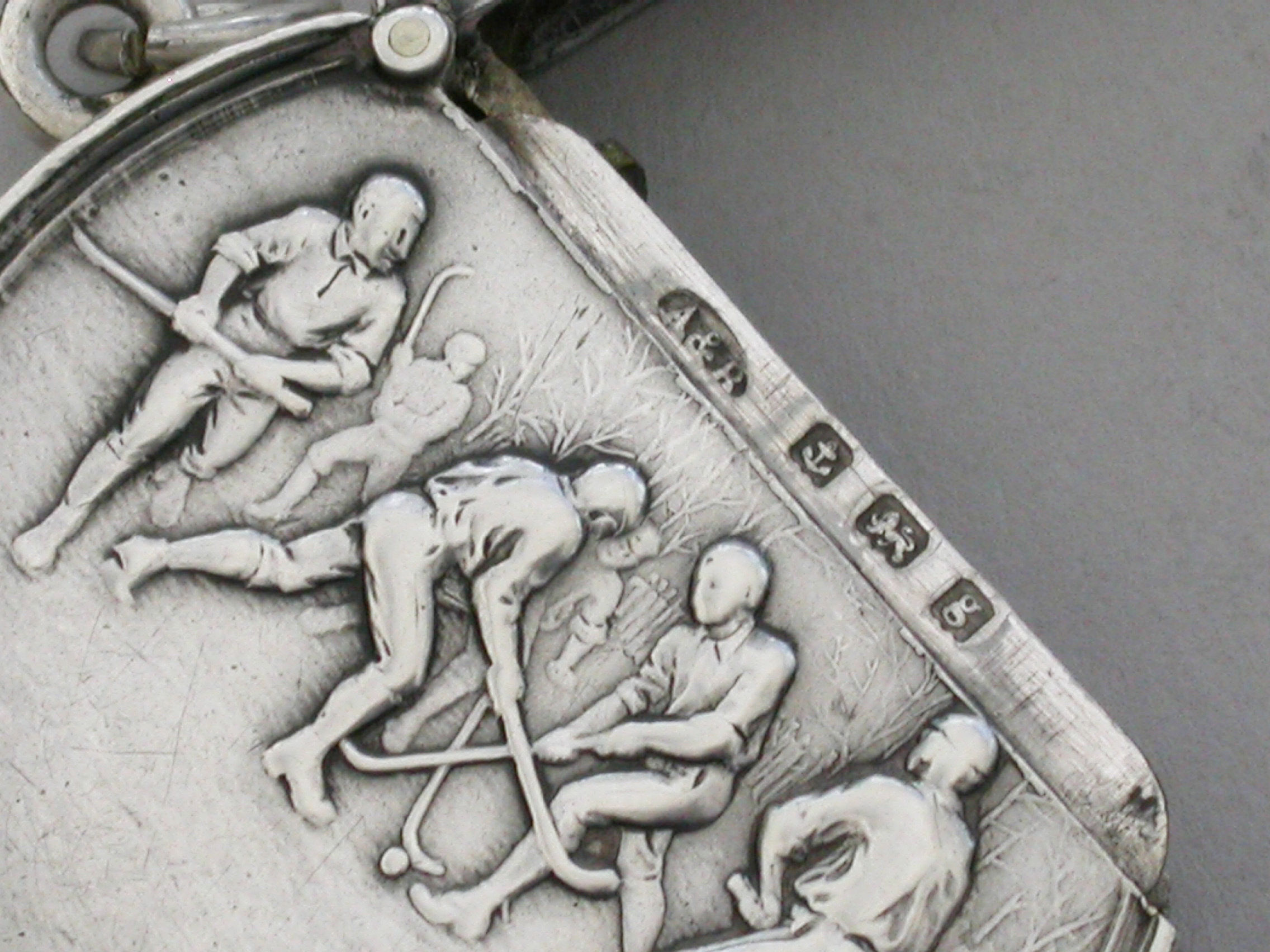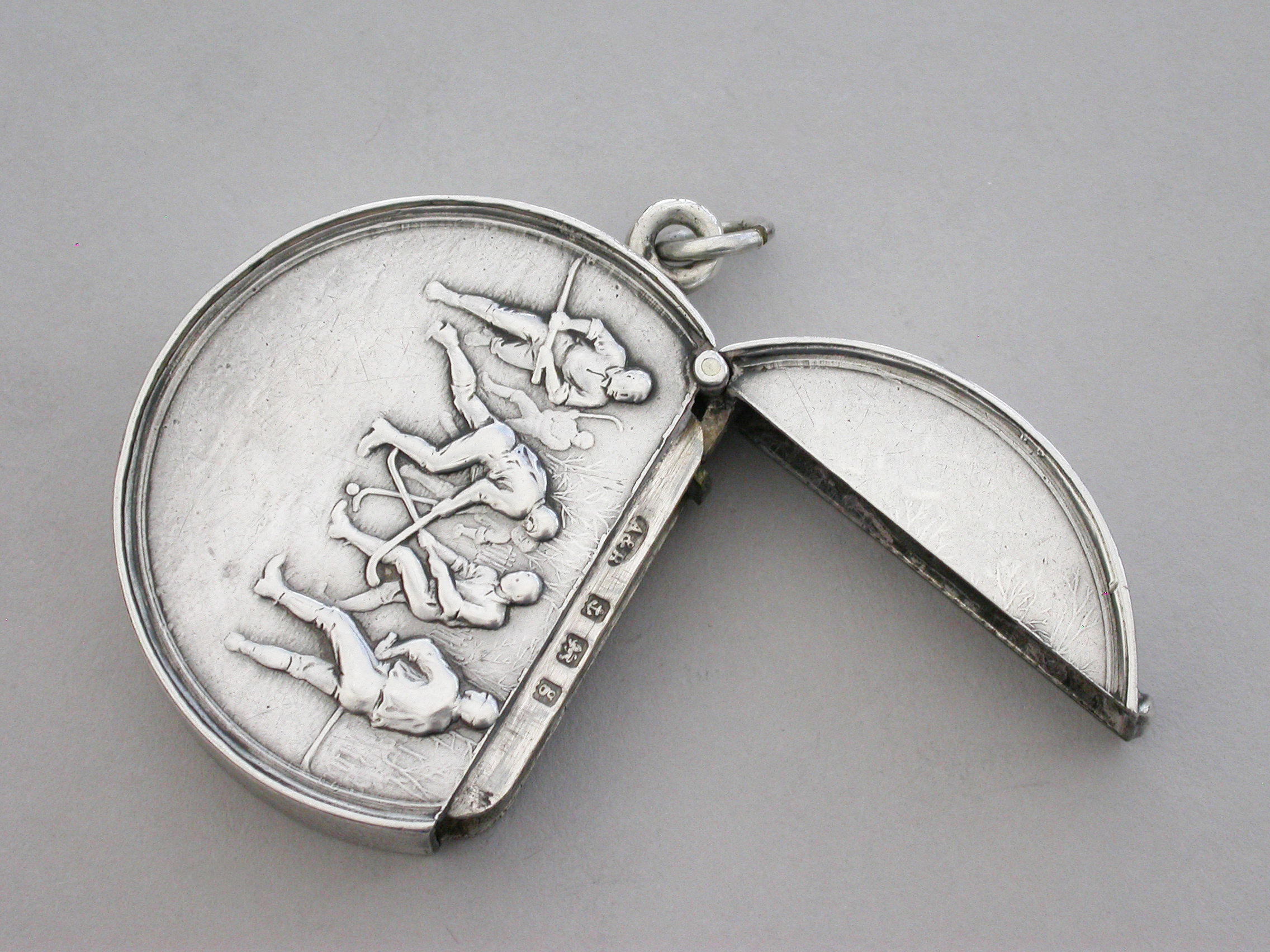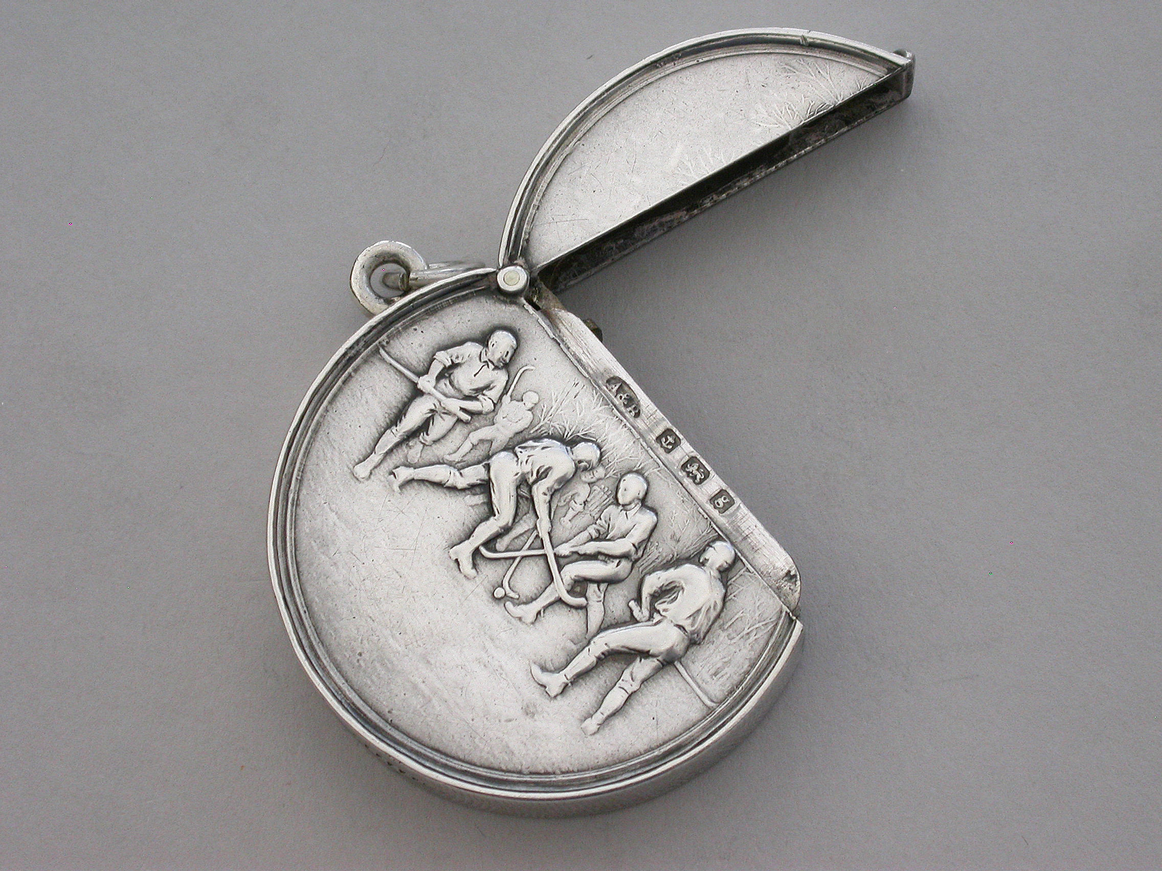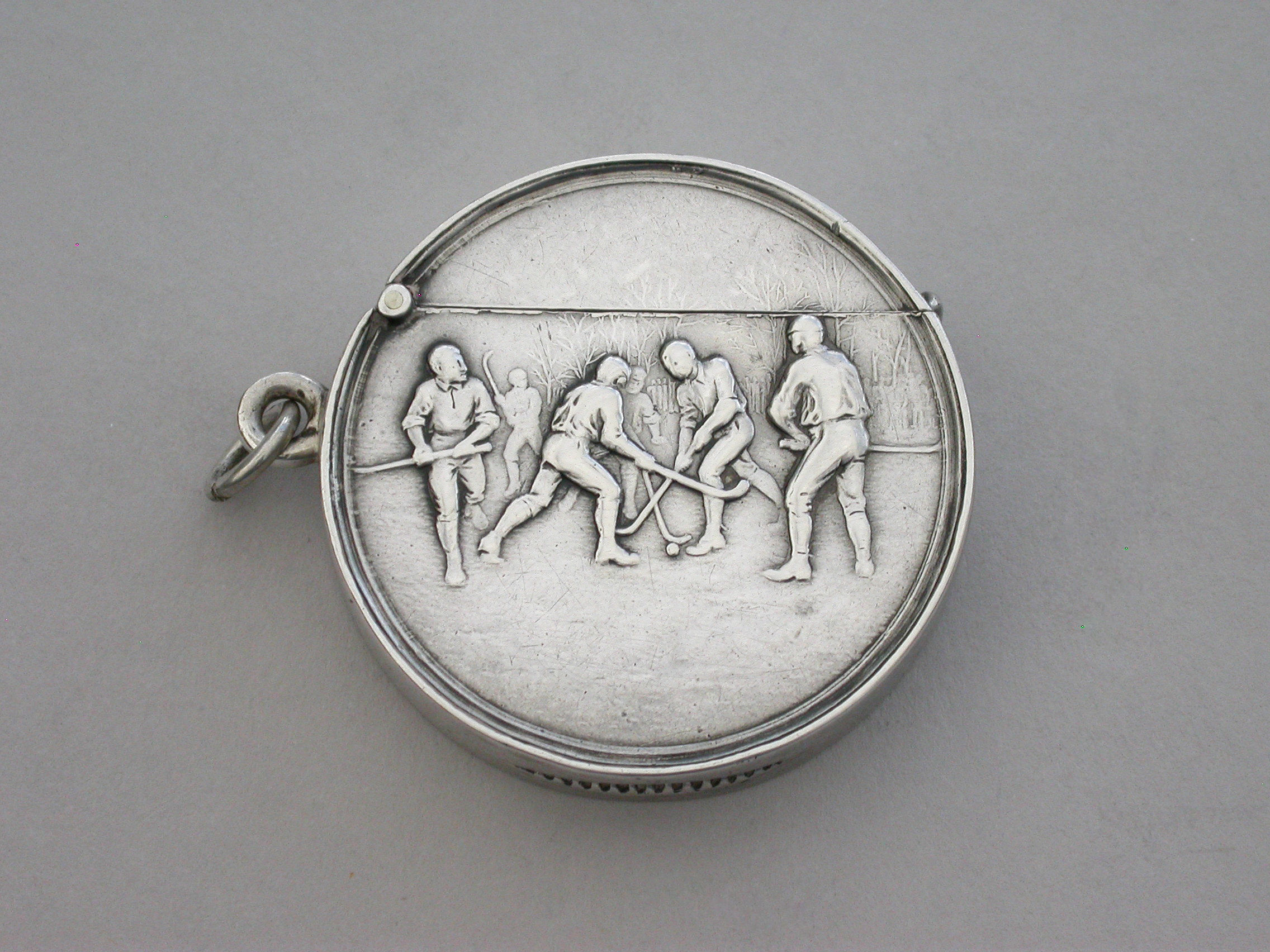 Edwardian Circular Silver Vesta Case - Hockey Players