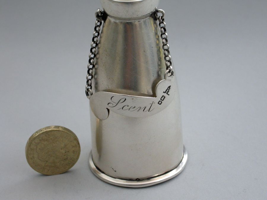 Edwardian Decanter Form Silver Scent Bottle & Label