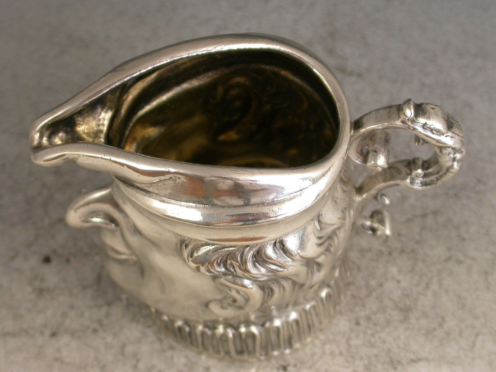 A Edwardian German novelty .930 standard silver Cream Jug modelled as Mr Punch, with scroll handle and silver gilt interior.