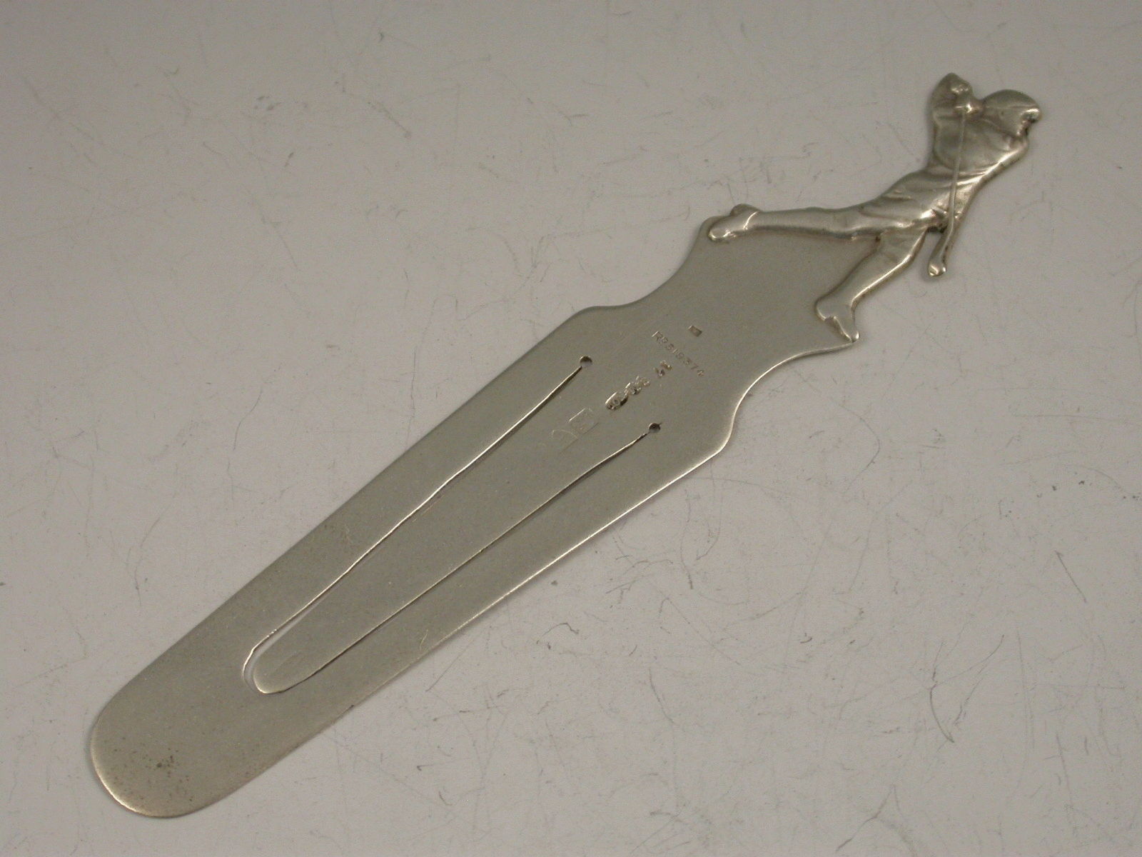 An Edwardian silver Bookmark the terminal formed as a Golfer in full swing.