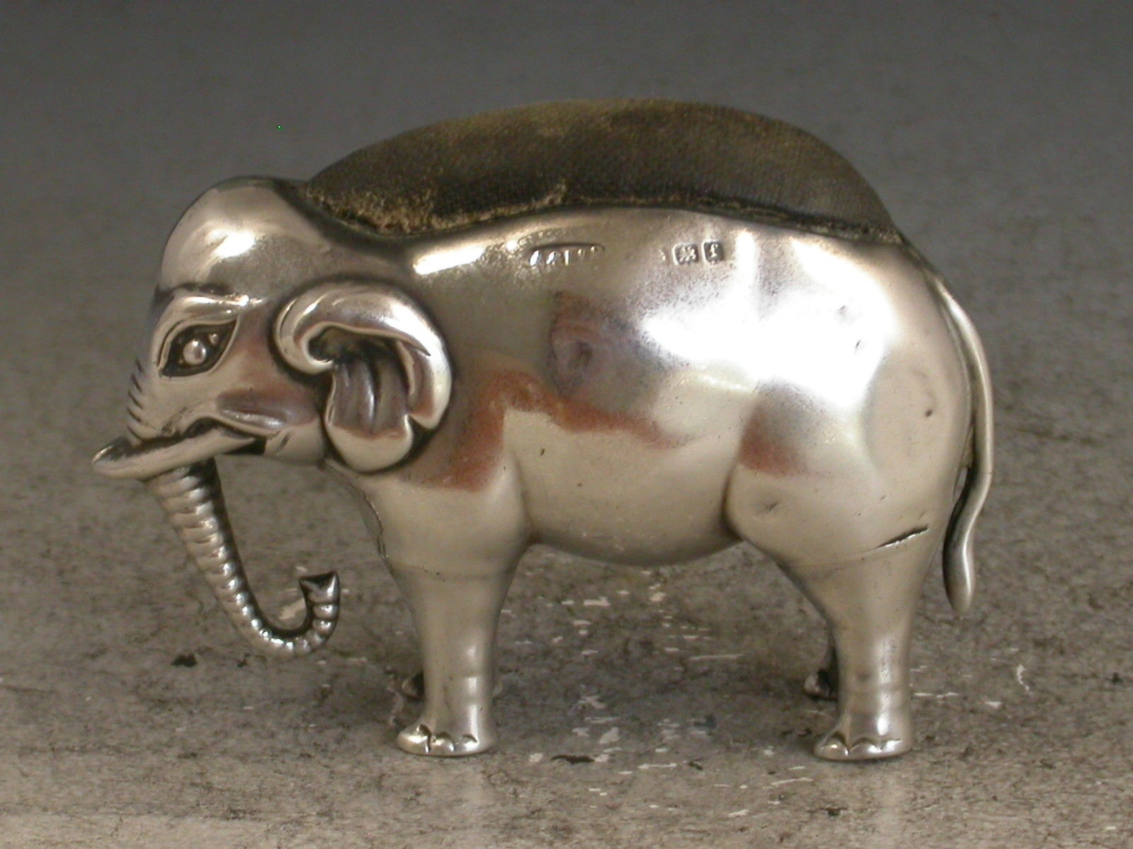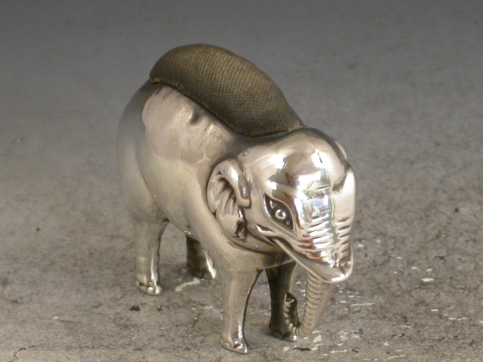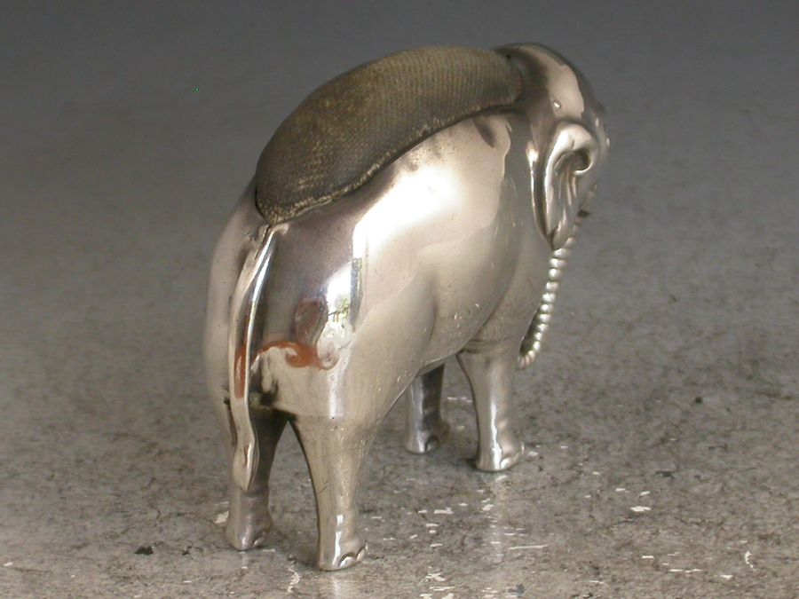 Edwardian Novelty Antique Silver Elephant Pin Cushion