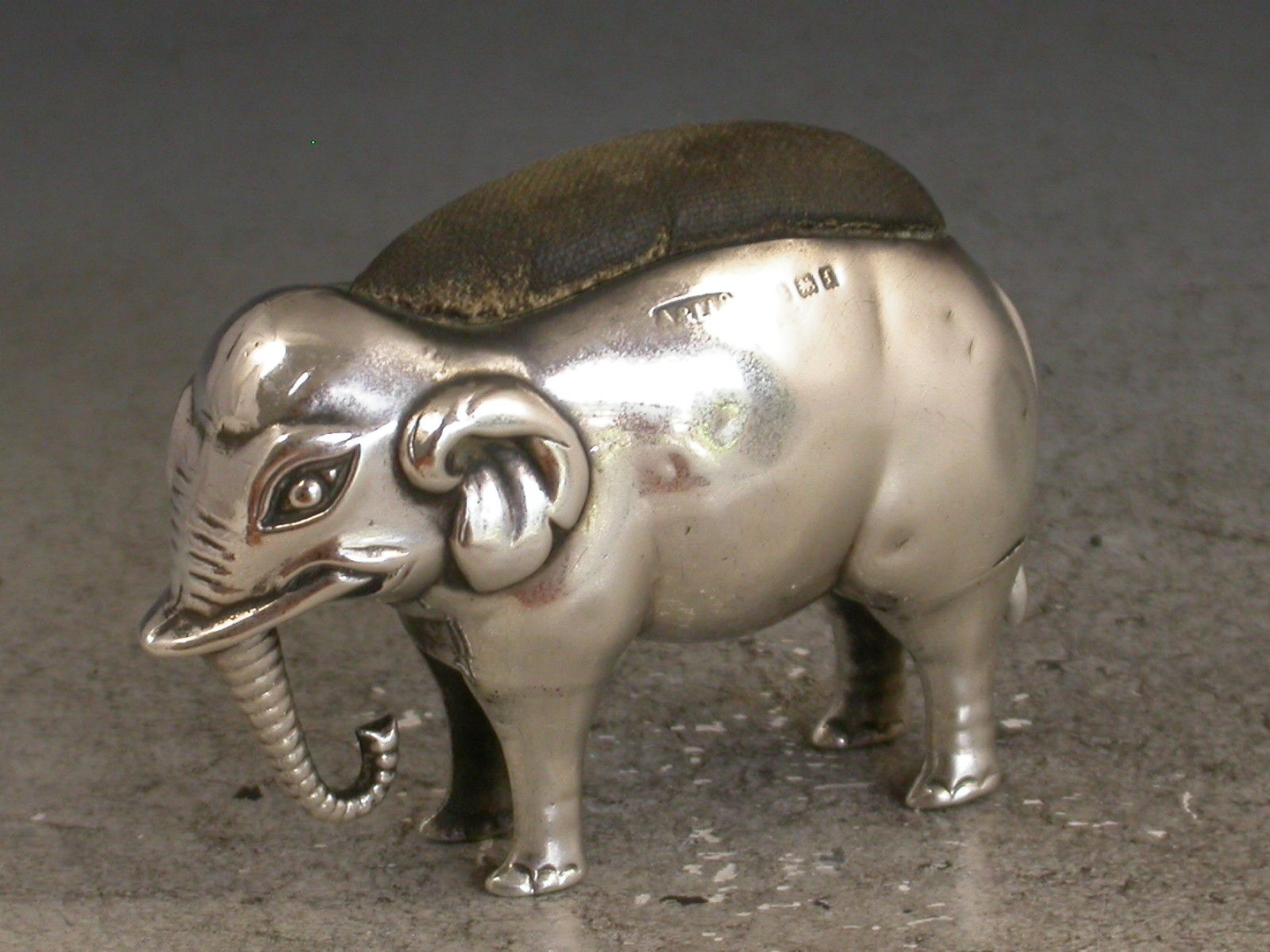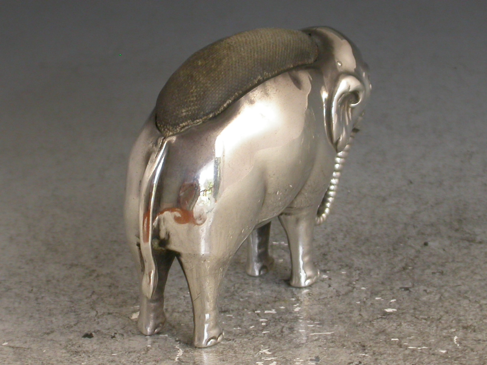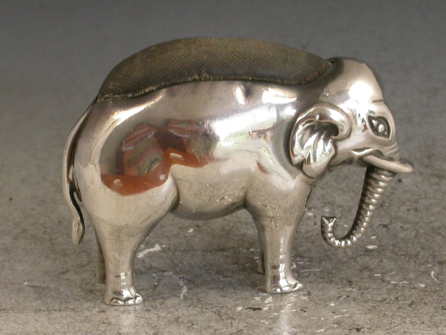 A good Edwardian novelty silver Pin Cushion made in the form of an elephant.