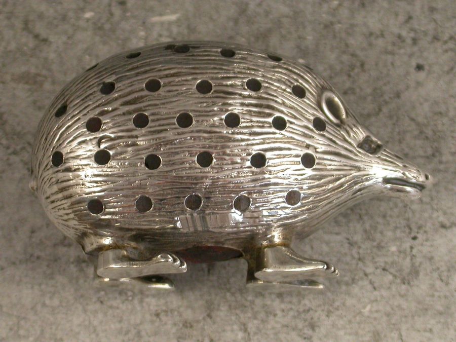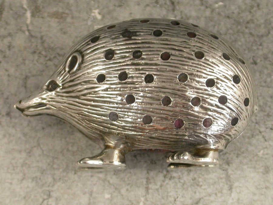 Edwardian Novelty Antique Silver Hedgehog Pin Cushion