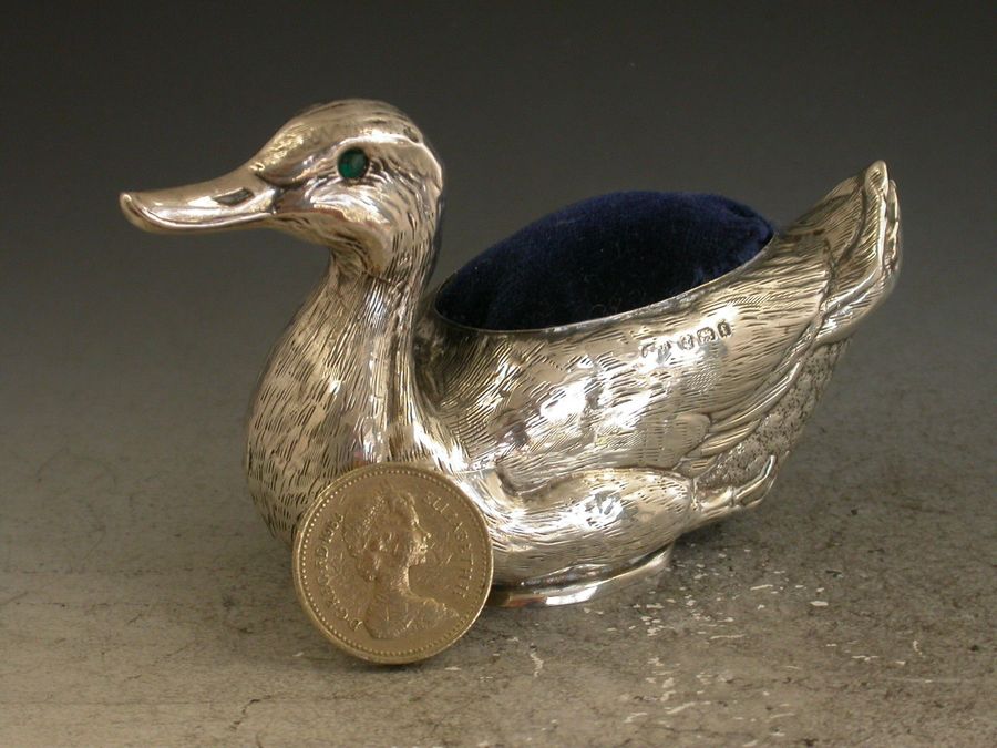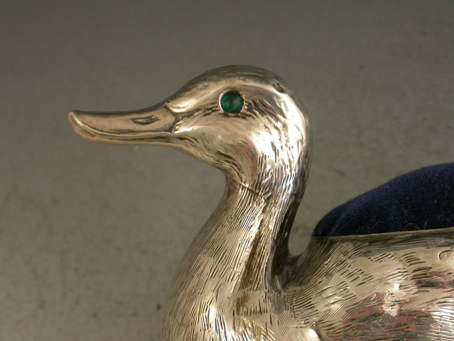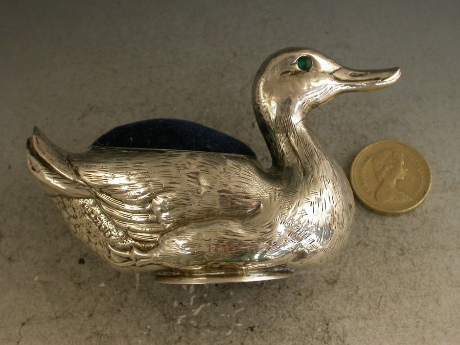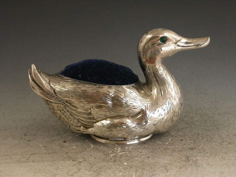 Edwardian Novelty Antique Silver Large Size Duck Pin Cushion