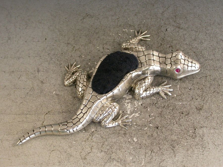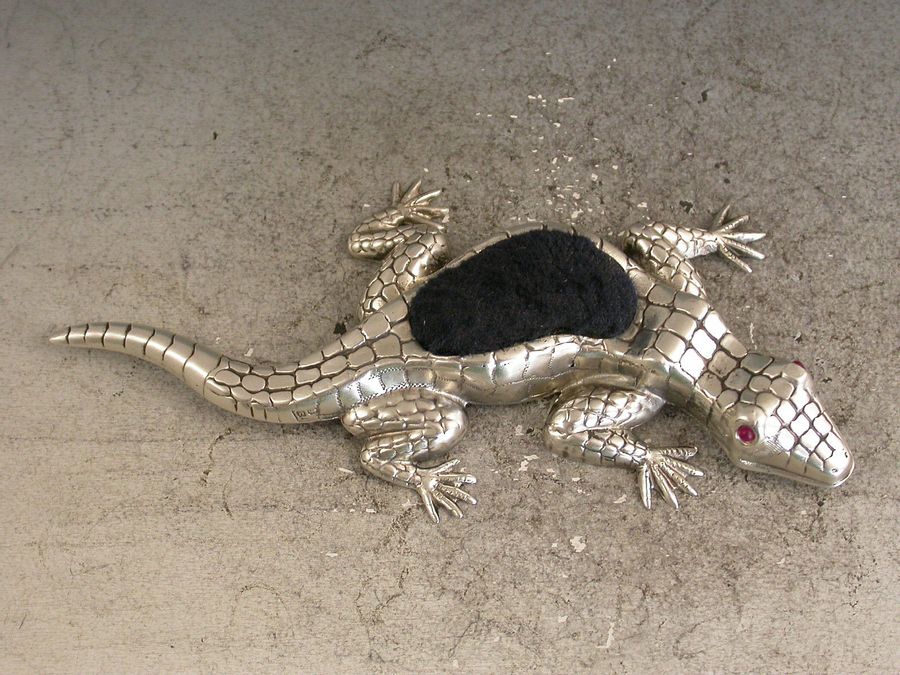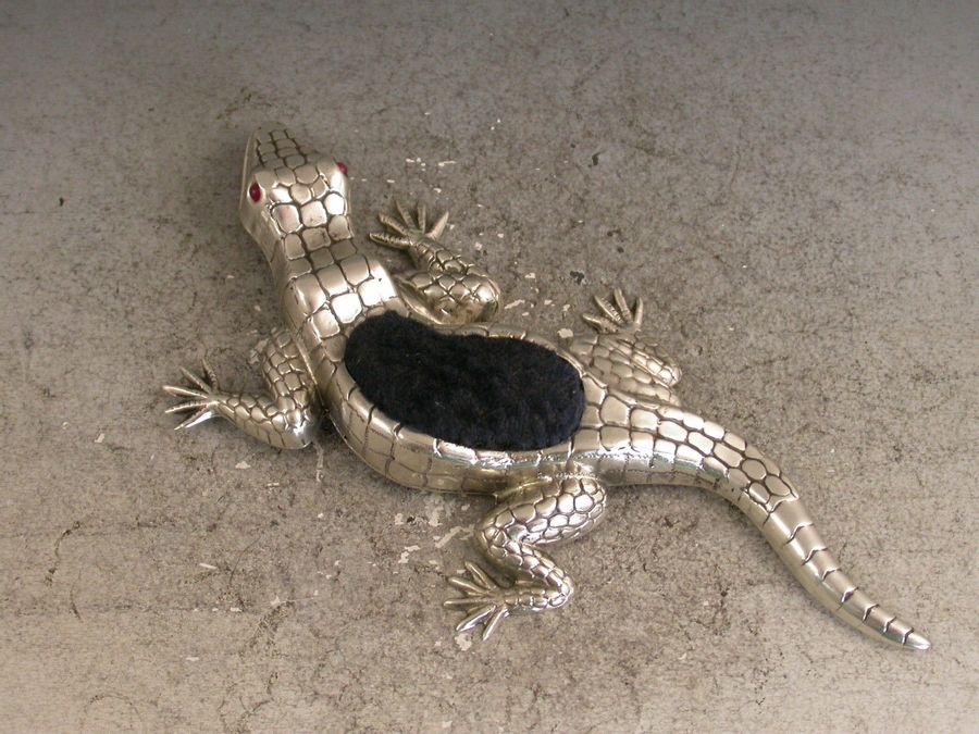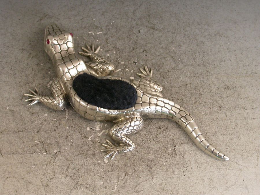 Edwardian Novelty Antique Silver Lizard Pin Cushion