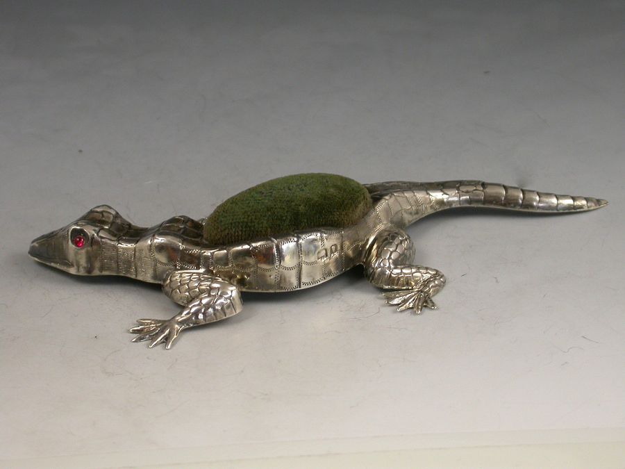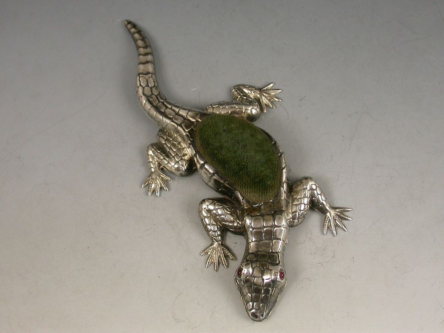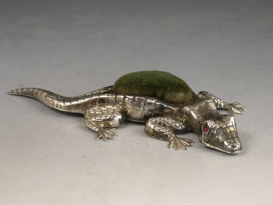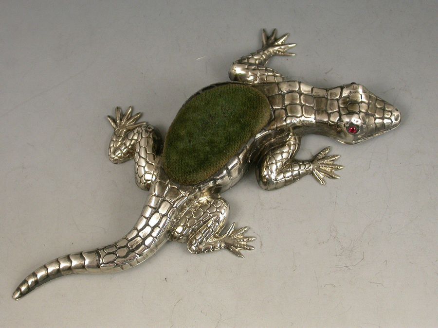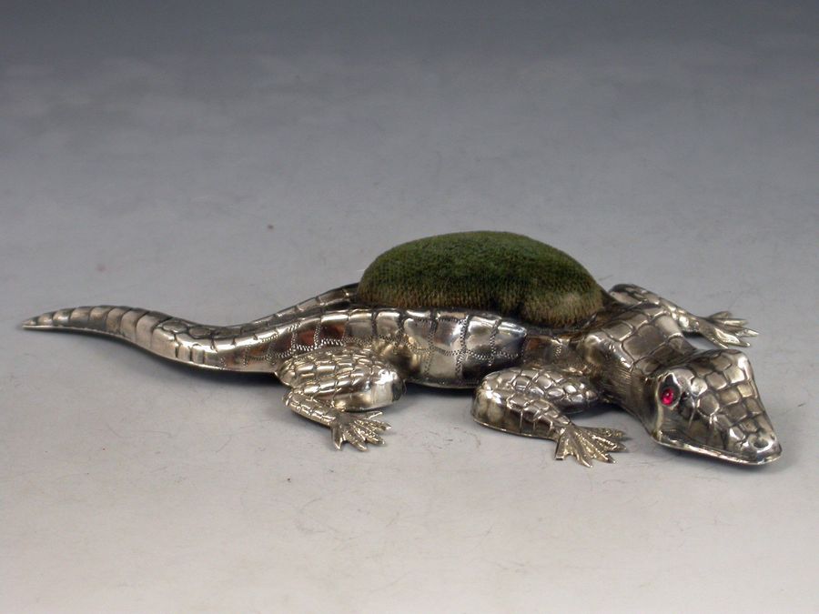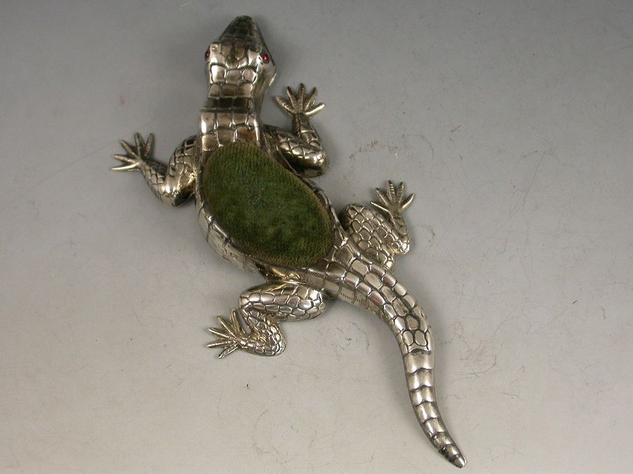Edwardian Novelty Antique Silver Lizard Pin Cushion