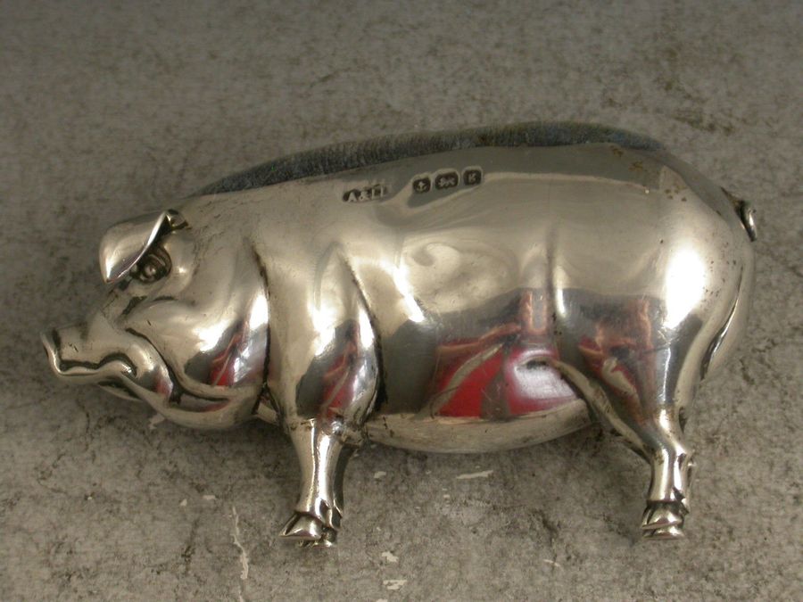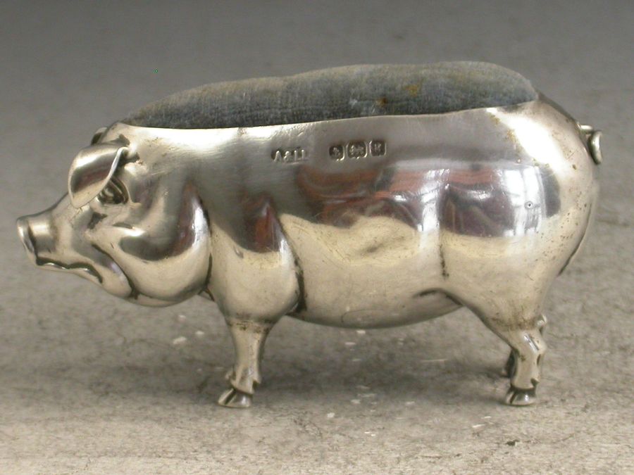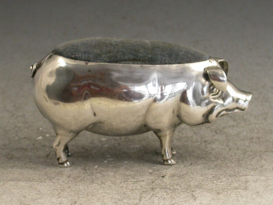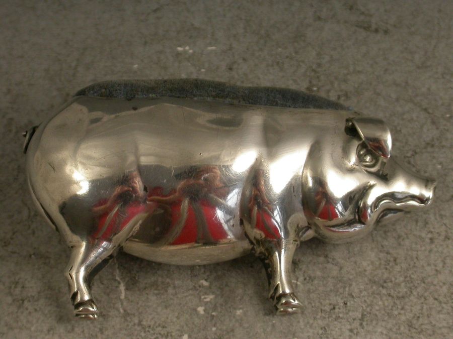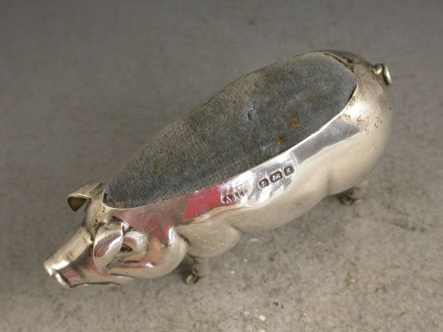 A good Edwardian novelty silver Pin Cushion made in the form of a medium size pig.