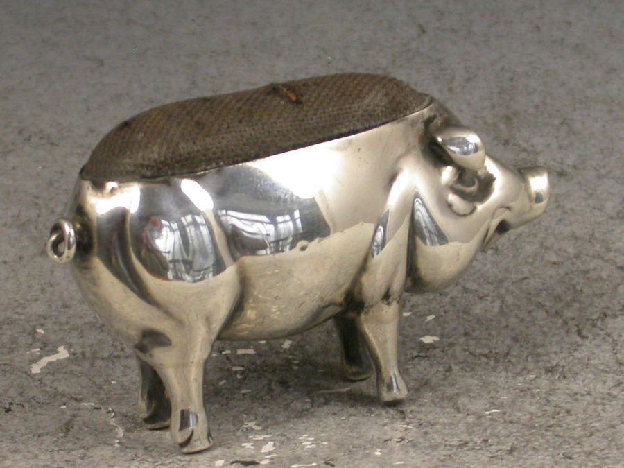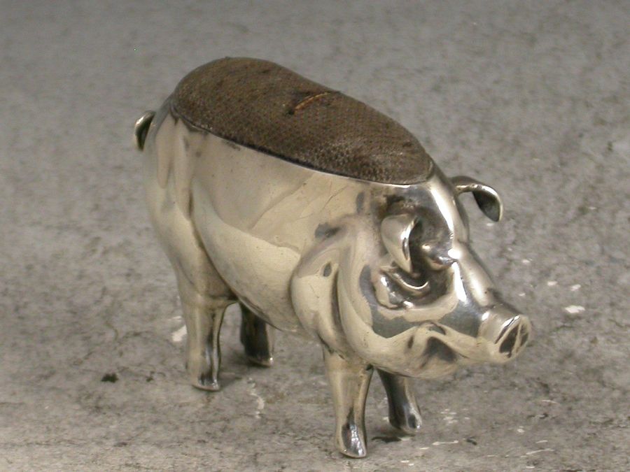 Edwardian Novelty Antique Silver Pig Pin Cushion