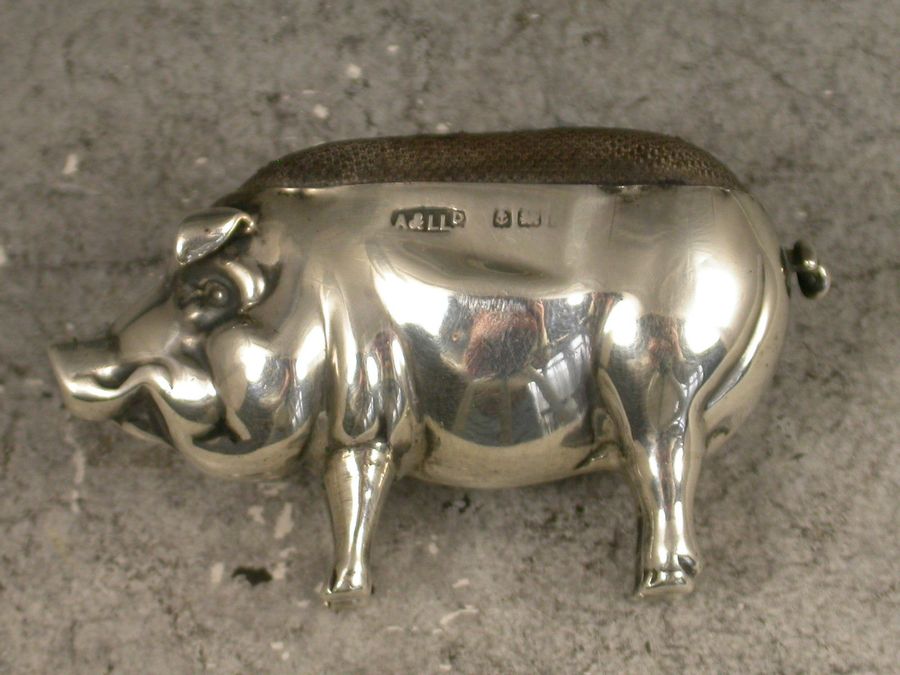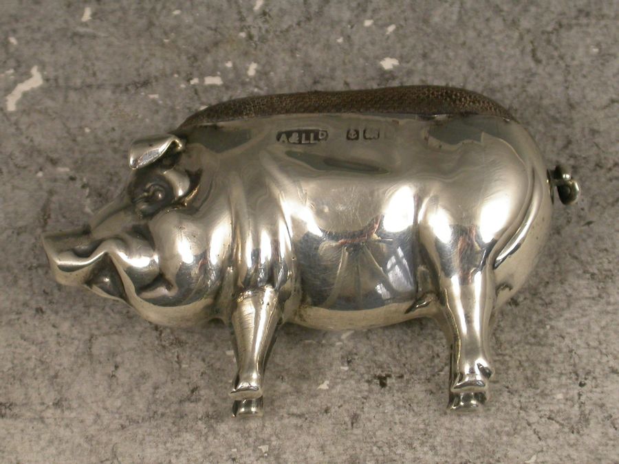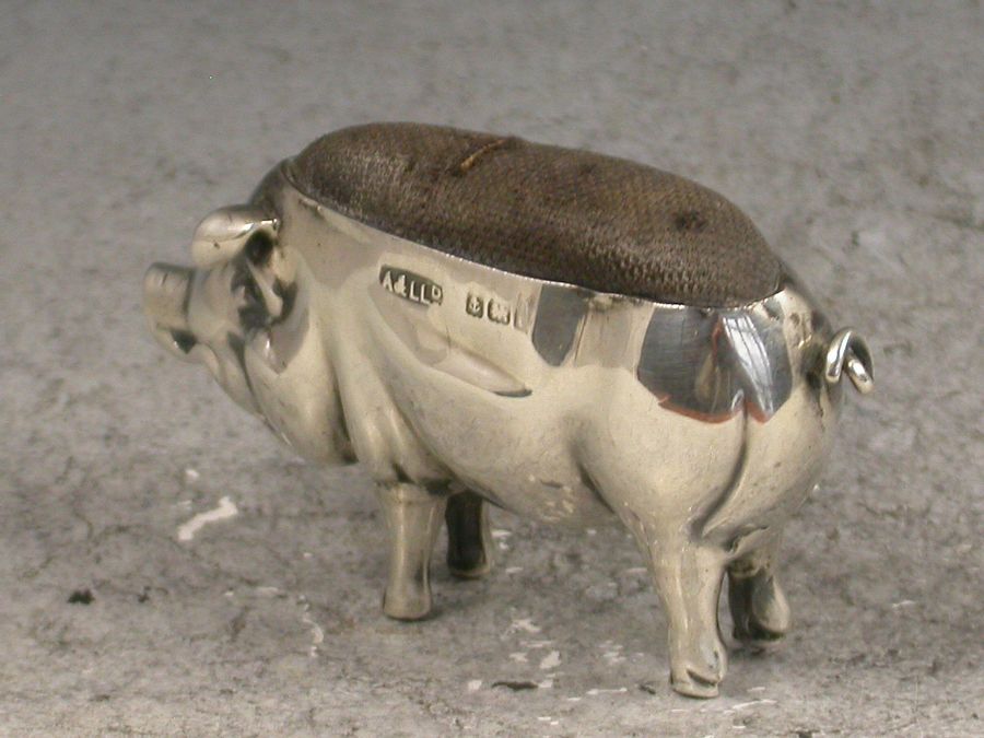 A good Edwardian novelty silver Pin Cushion made in the form of a Pig of small size.