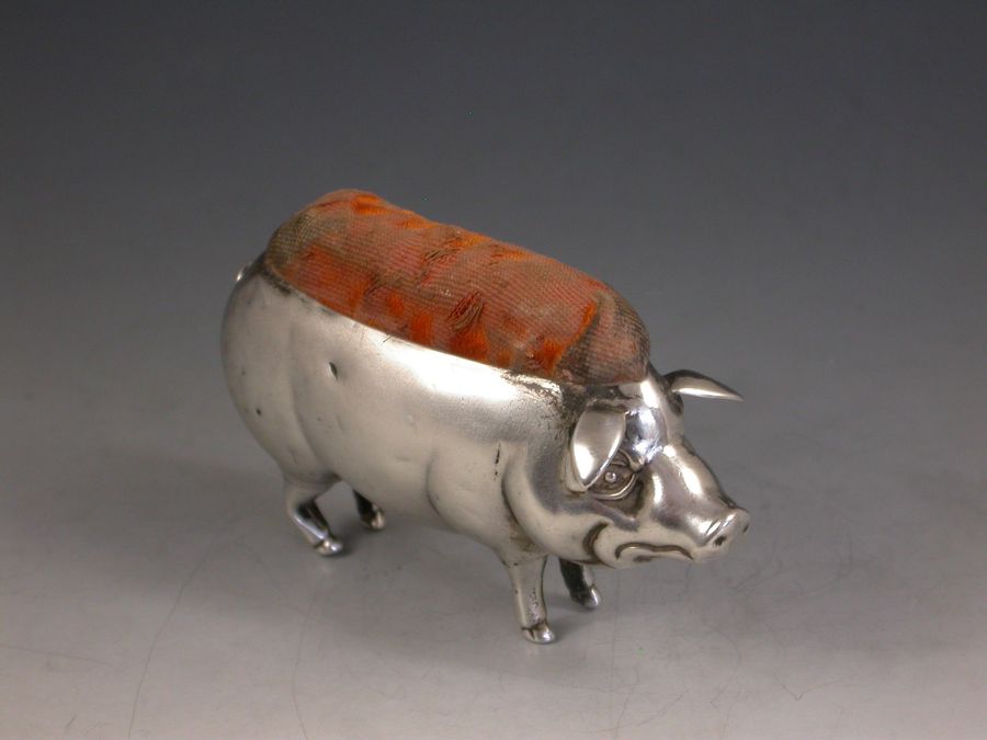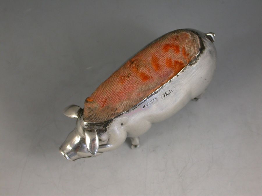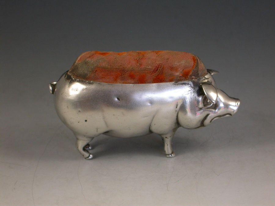 A good Edwardian novelty silver Pin Cushion made in the form of a Pig.