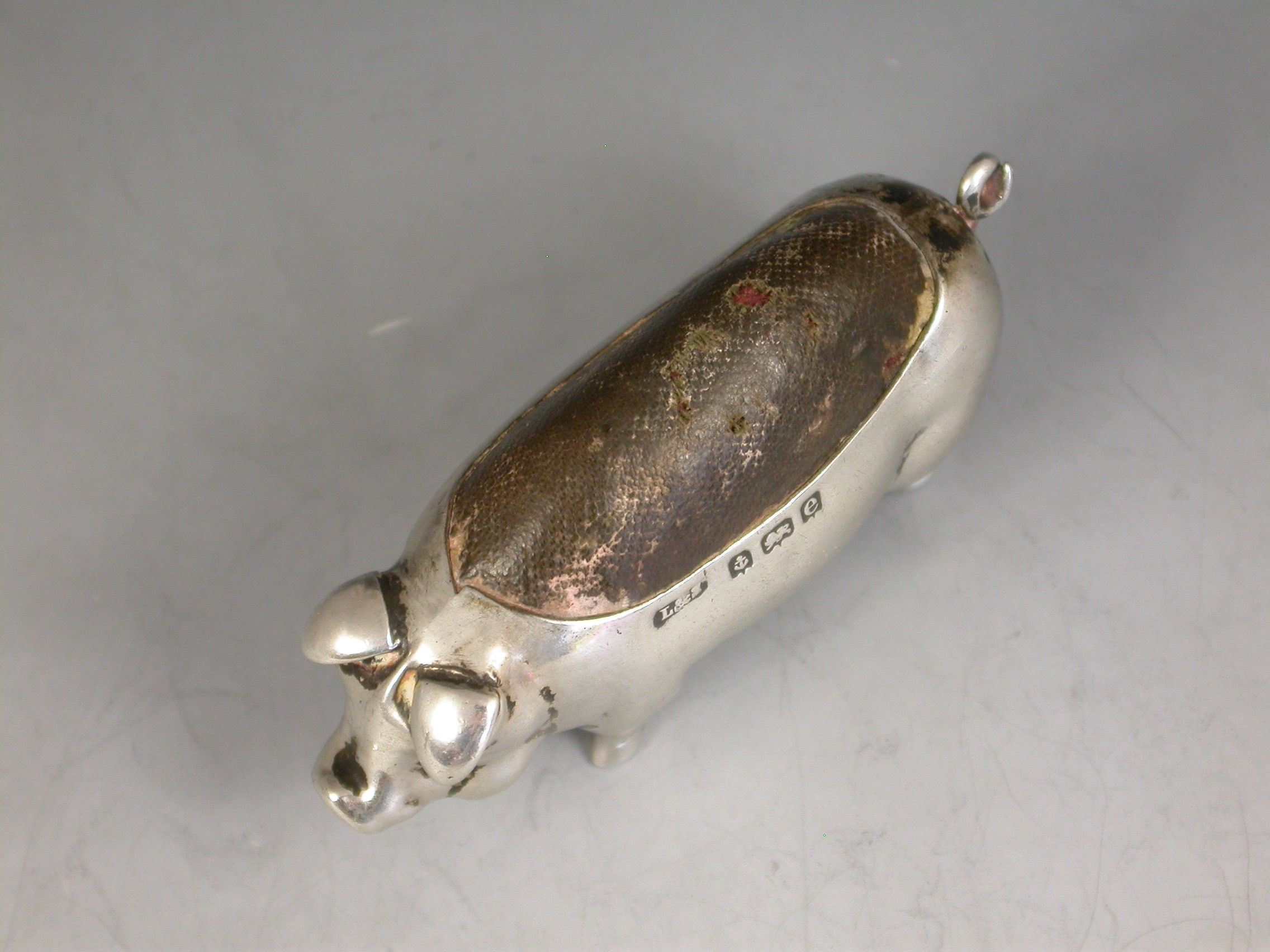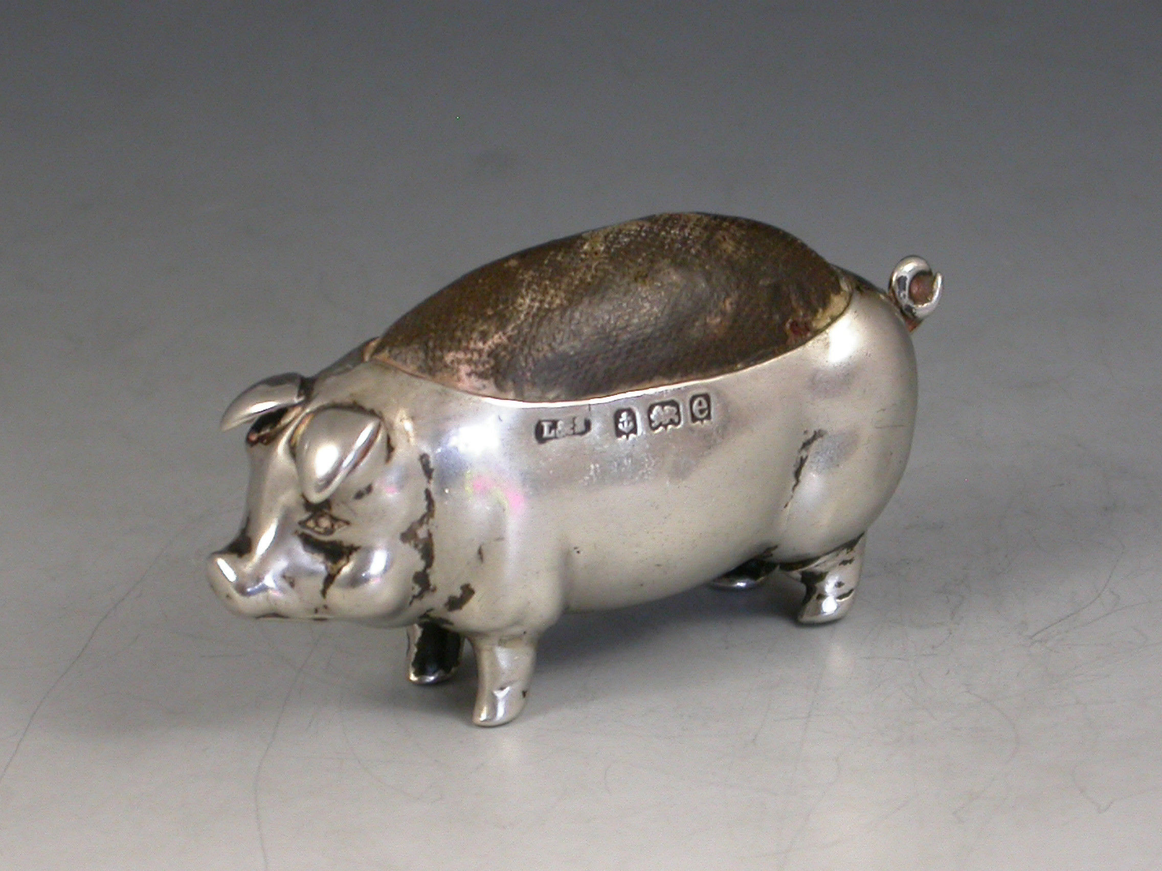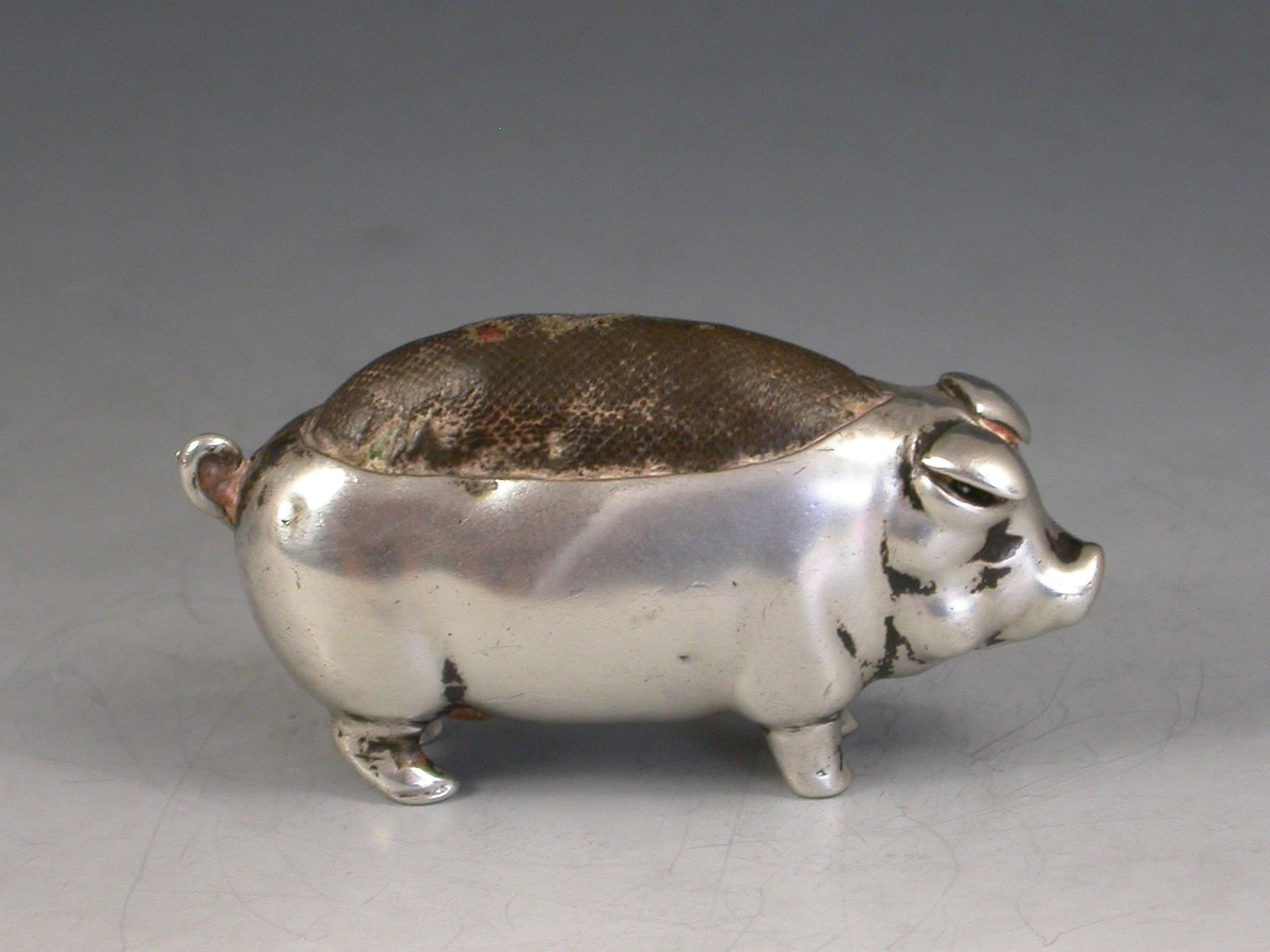 Edwardian Novelty Antique Silver Pig Pin Cushion