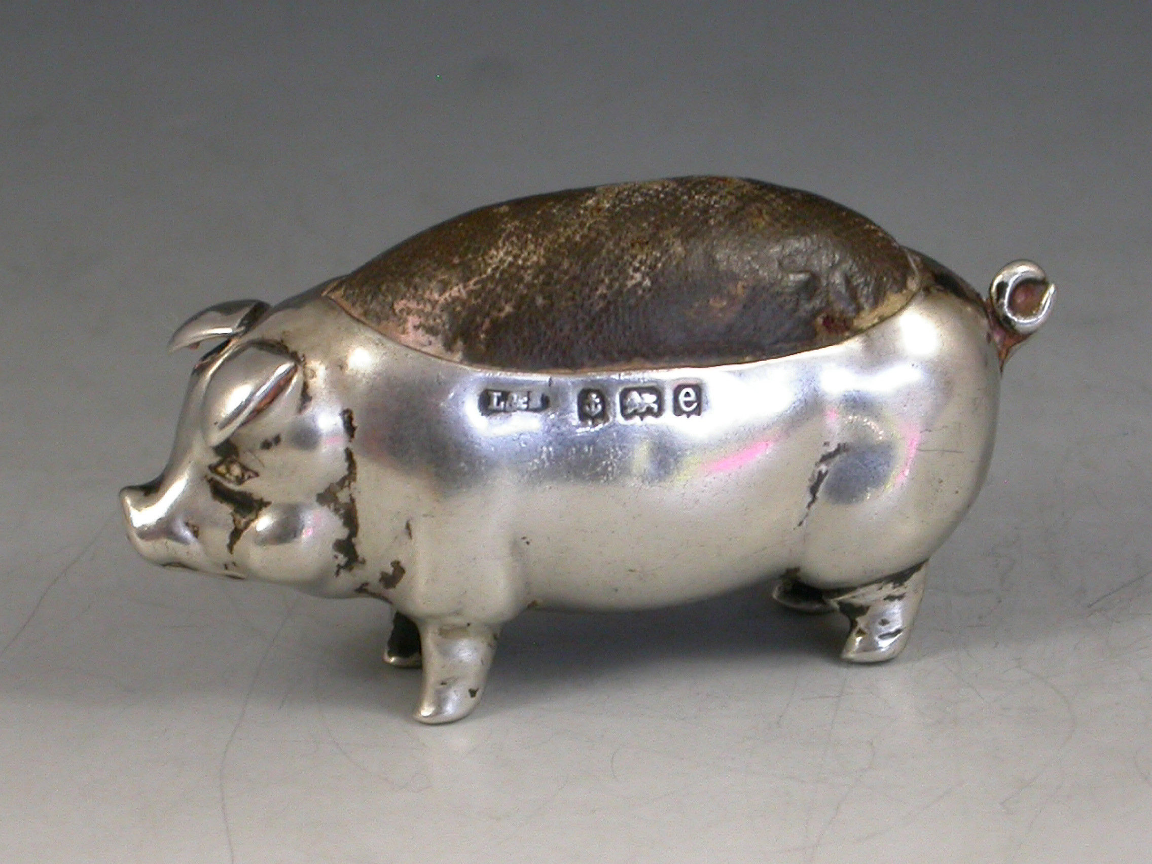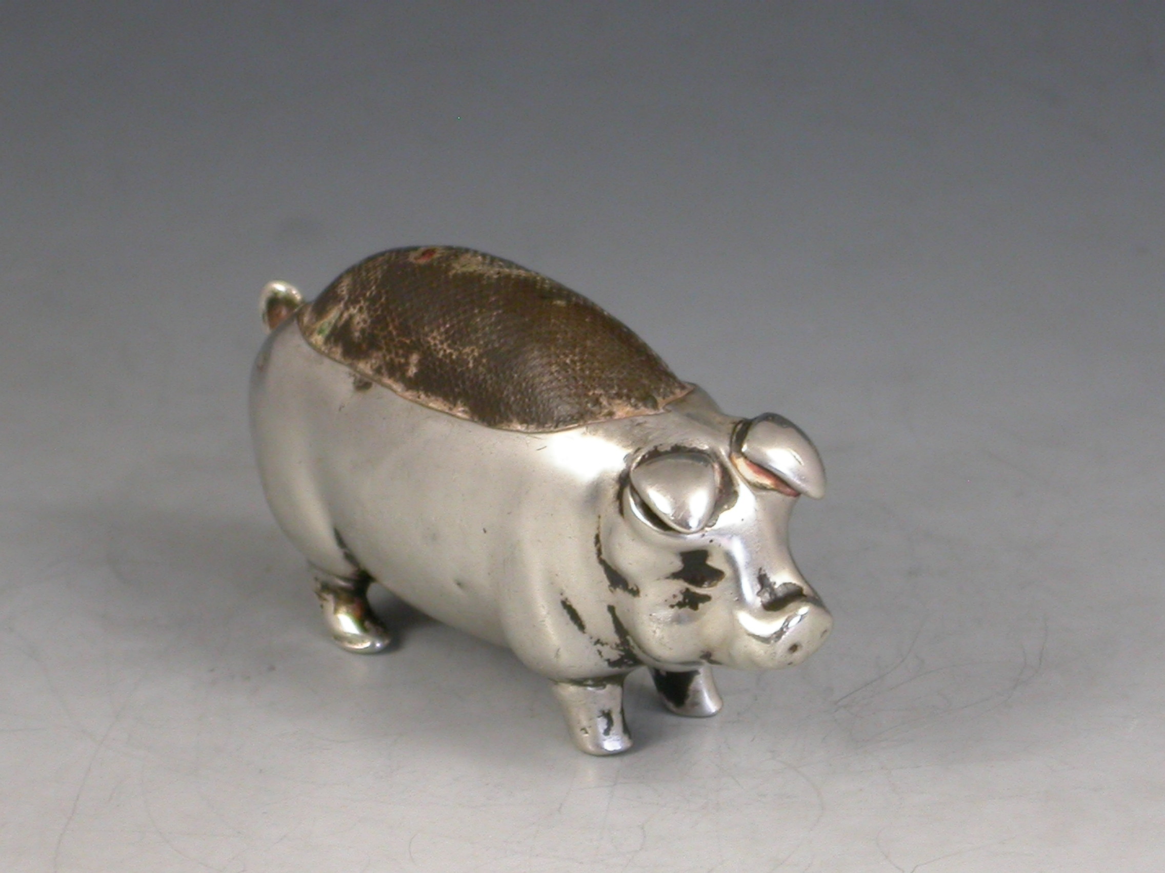 A good Edwardian novelty silver Pin Cushion made in the form of a Pig.