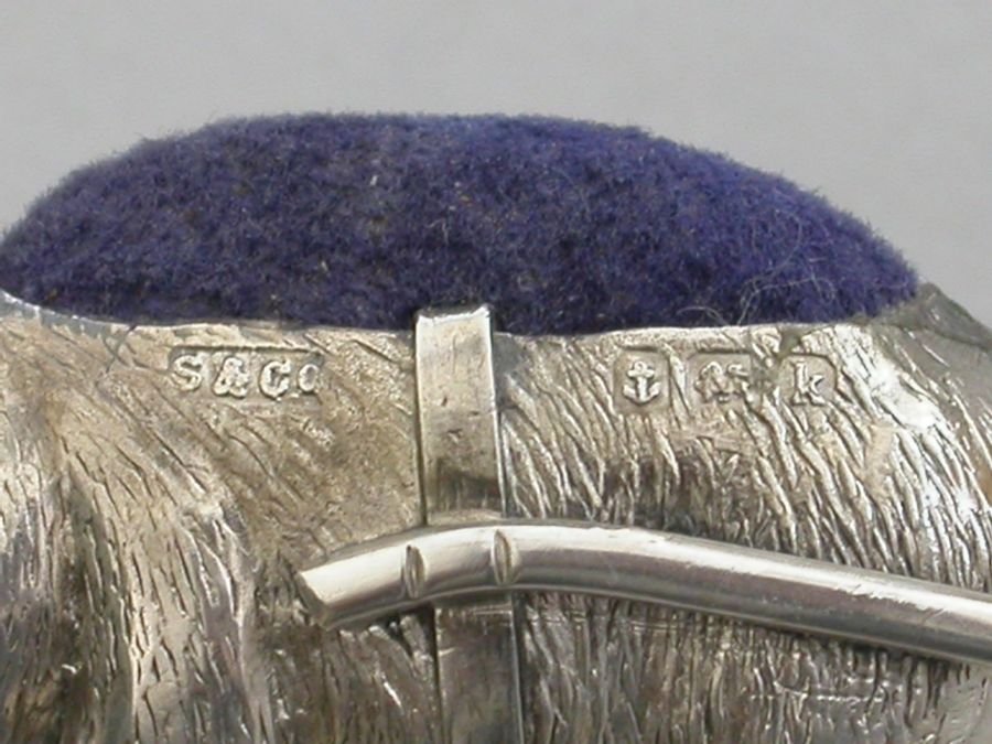 Edwardian Novelty Antique Silver Pig Pulling a Cart Pin Cushion