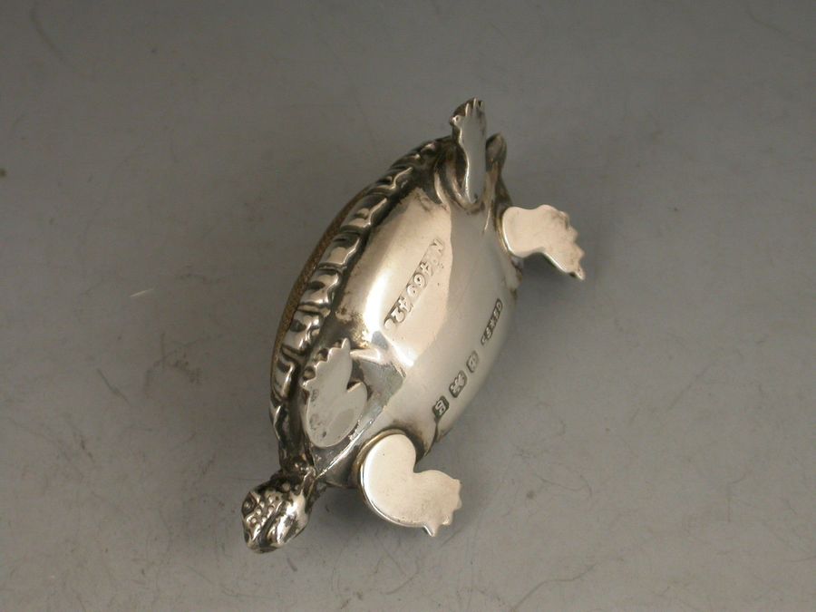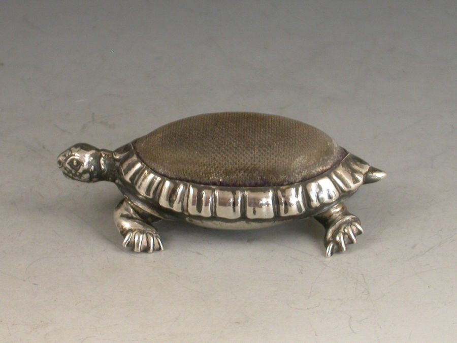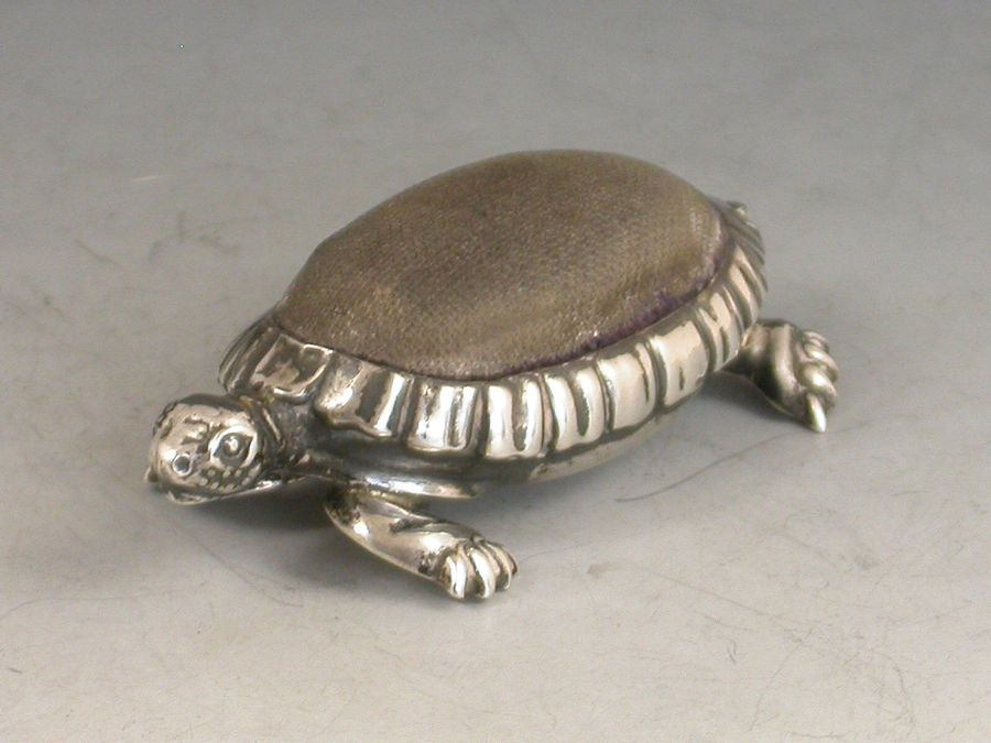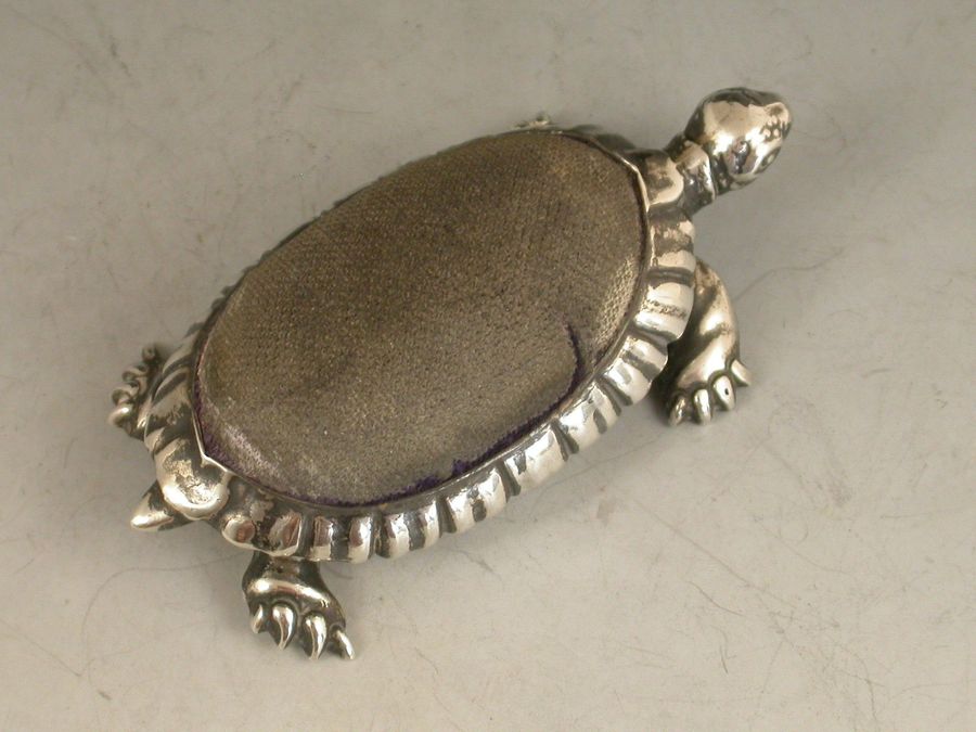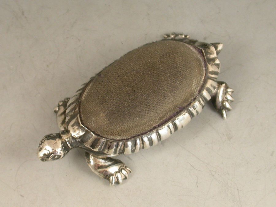 Edwardian Novelty Antique Silver Tortoise Pin Cushion