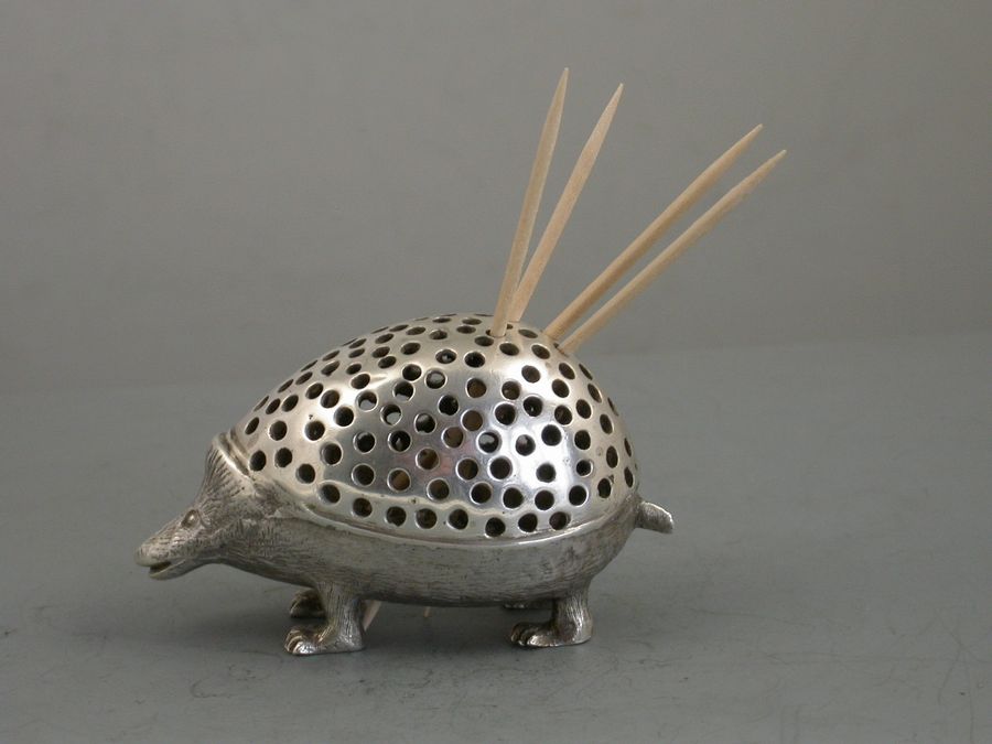 An unusual early 20th century heavy cast novelty silver Toothpick Holder made in the form of a Porcupine.
