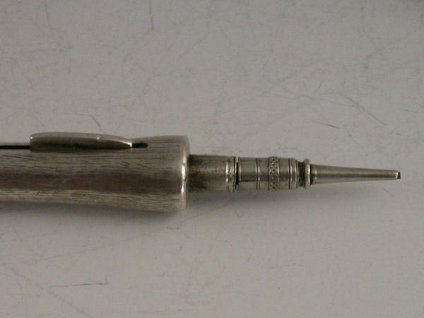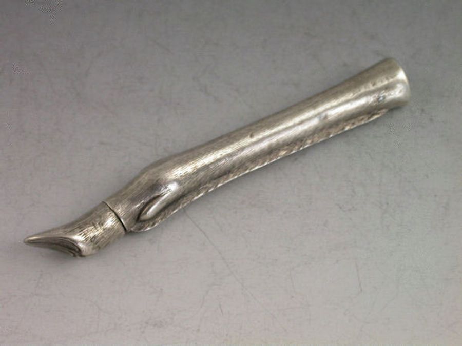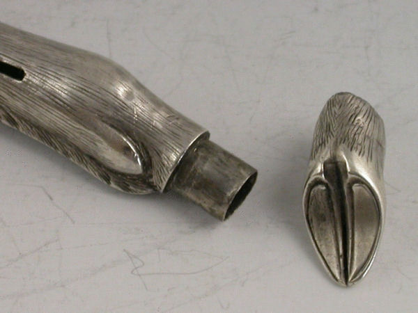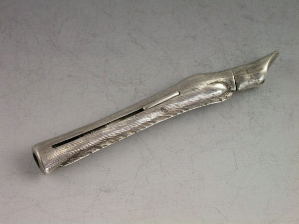 An interesting early 20th century silver Propelling Pencil with slide action opening mechanism, modelled in the form of a Deer’s Leg and Foot, with removable hoof and storage compartment for leads.