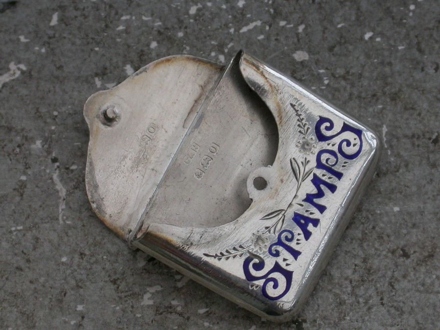 Edwardian Novelty Silver & Enamel Envelope Stamp Case
