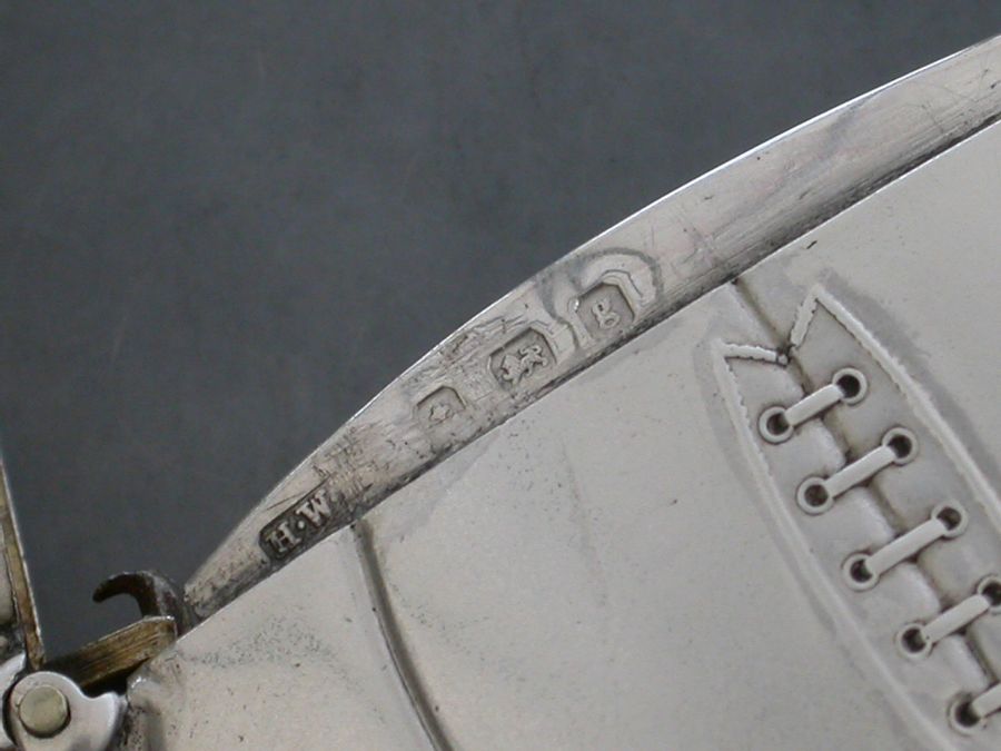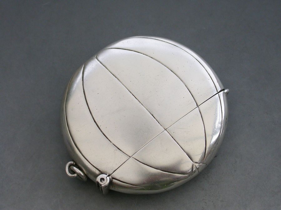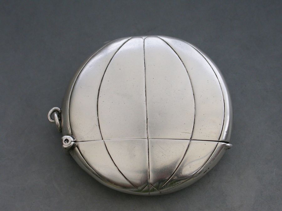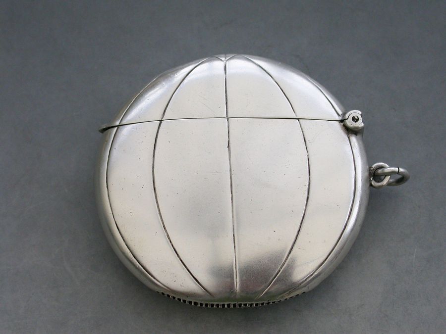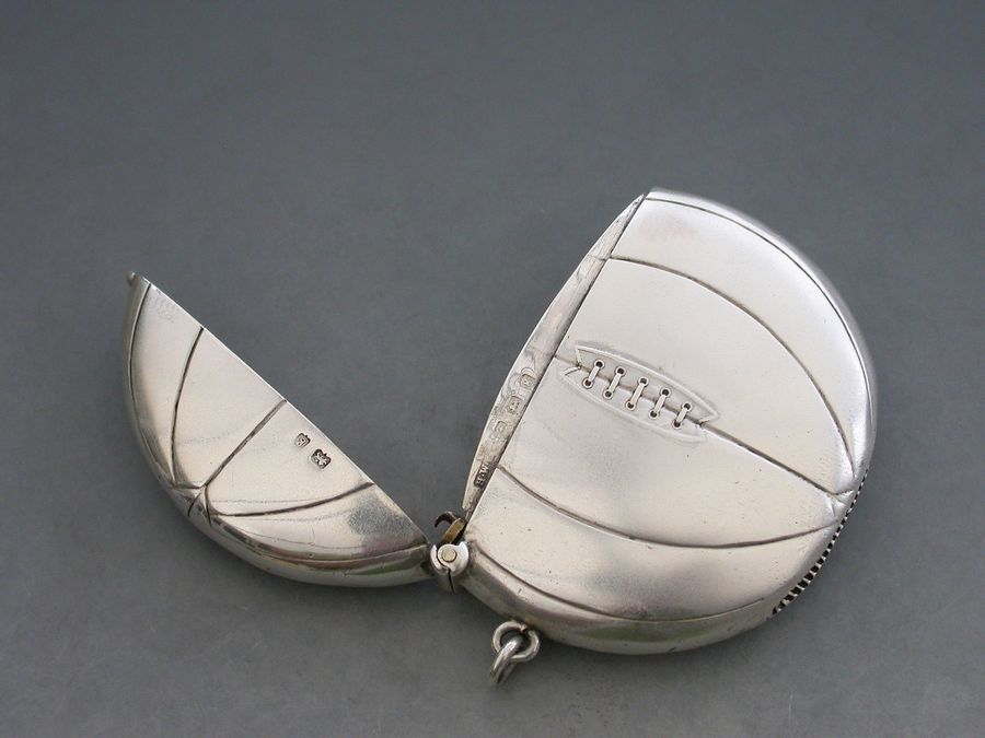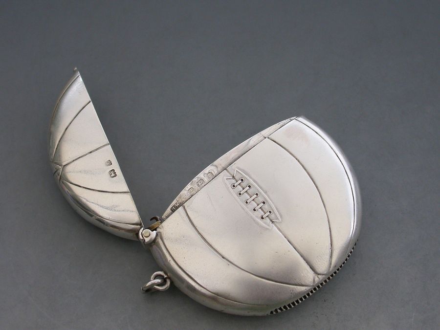 A rare Victorian novelty silver Vesta Case, made in the form of a leather Association Football, with realistic engraved lace and panel detail.