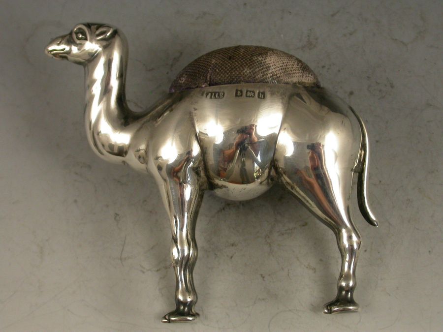 An Edwardian novelty silver Pin Cushion made in the form of Camel.