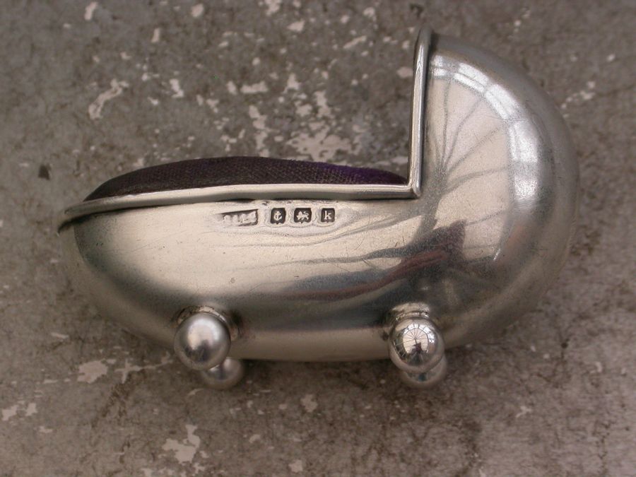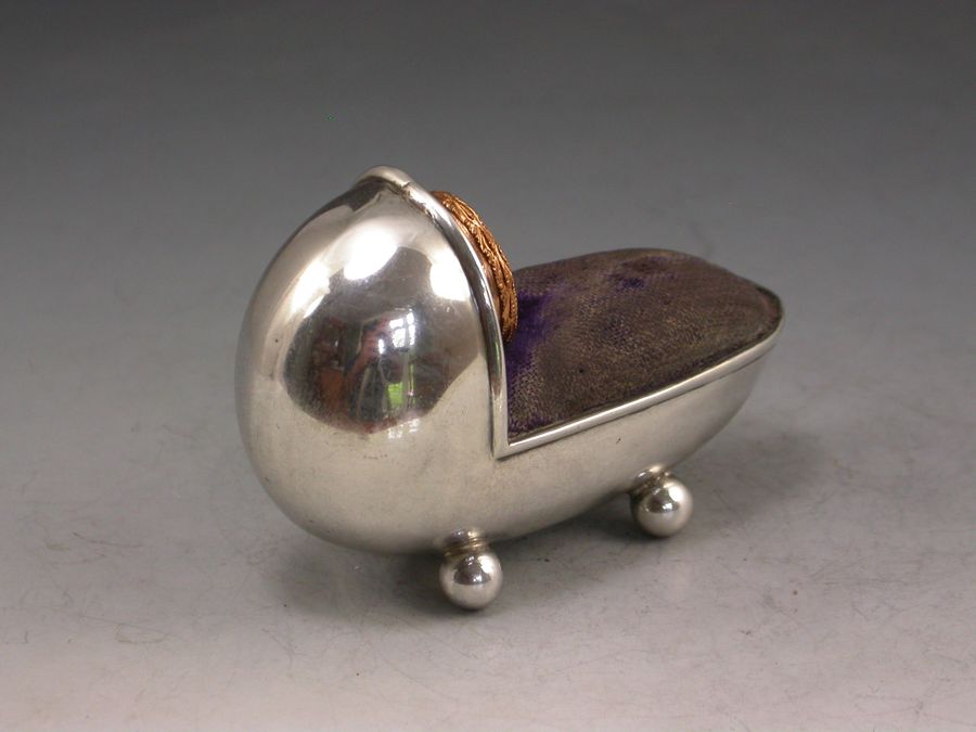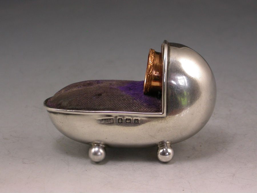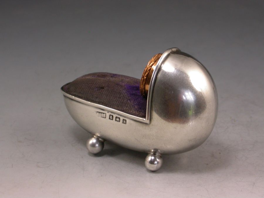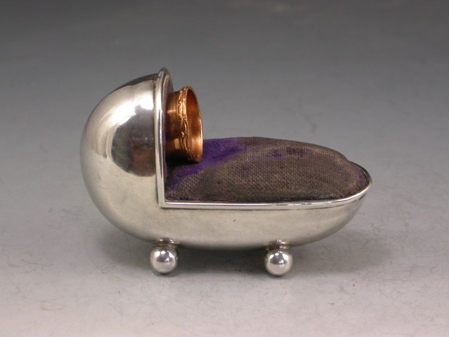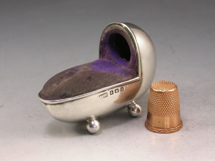 Edwardian Novelty Silver Crib Pin Cushion & Thimble Holder