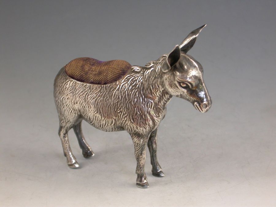 Edwardian Novelty Silver Donkey Pin Cushion